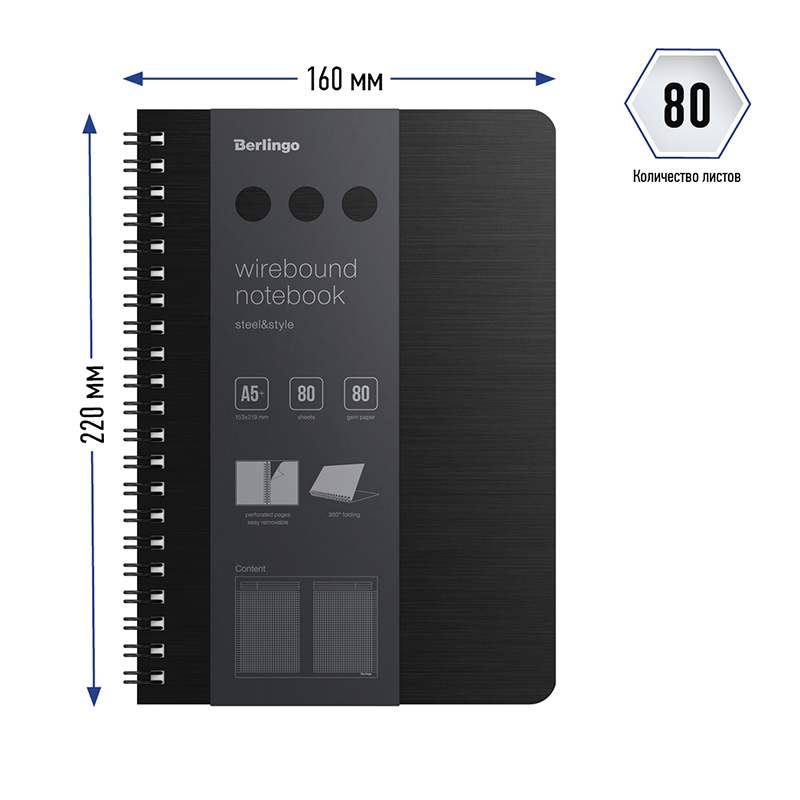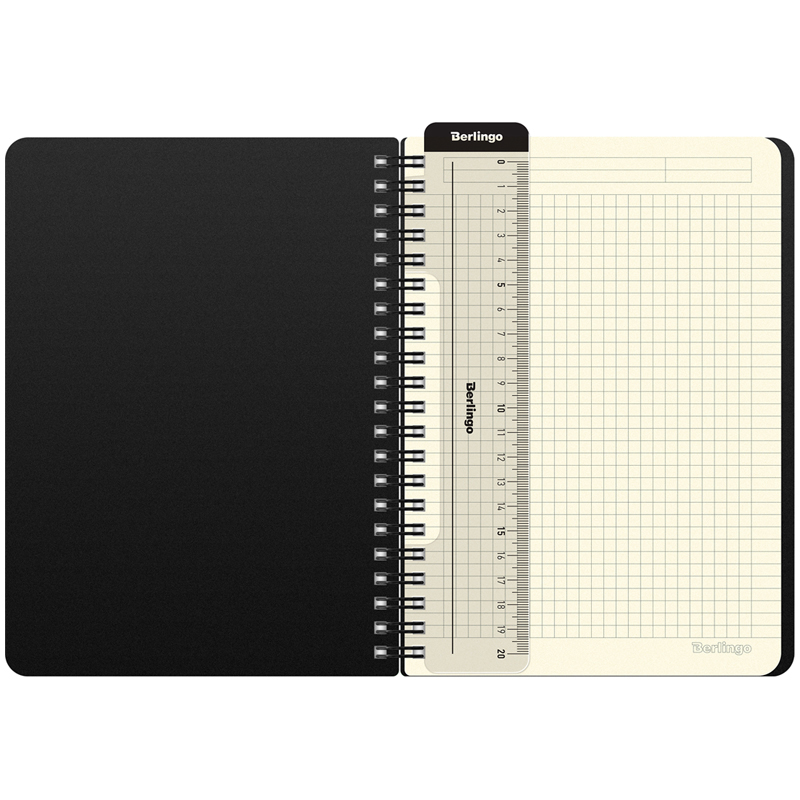 Бизнес-тетрадь Berlingo "Steel&Style" - это практичное, стильное и современное изделие для планирования и записей. Такая бизнес-тетрадь является незаменимым инструментом для деловых людей. Увеличенная толщина обложки (1500мкм) в сочетании с фактурой "сталь", формата А5+. Материал обложки - трехслойный пластик (полифом), надежно защищает внутренний блок от влаги, замятия и загрязнения, обложка устойчива к загрязнениям. Насыщенный черный цвет внешней стороны, в сочетании с черным цветом внутренней поверхности. Вид скрепления – гребень со стильными черными кольцами, который дает возможность раскрывать тетрадь на 360⁰. Бизнес-тетрадь содержит съемную брендированную линейку, которую можно использовать как закладку или разделитель и с легкостью можно перемещать в удобное место. Внутренний блок – высококачественная тонированная бумага, плотностью 80г/м2, 80 листов в клетку, рамка для заголовка, темы или даты, поля с обеих сторон блока на каждом листе, линовка на вылет. Внутренний блок имеет микроперфорацию для ровно