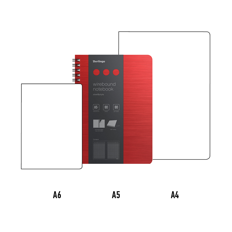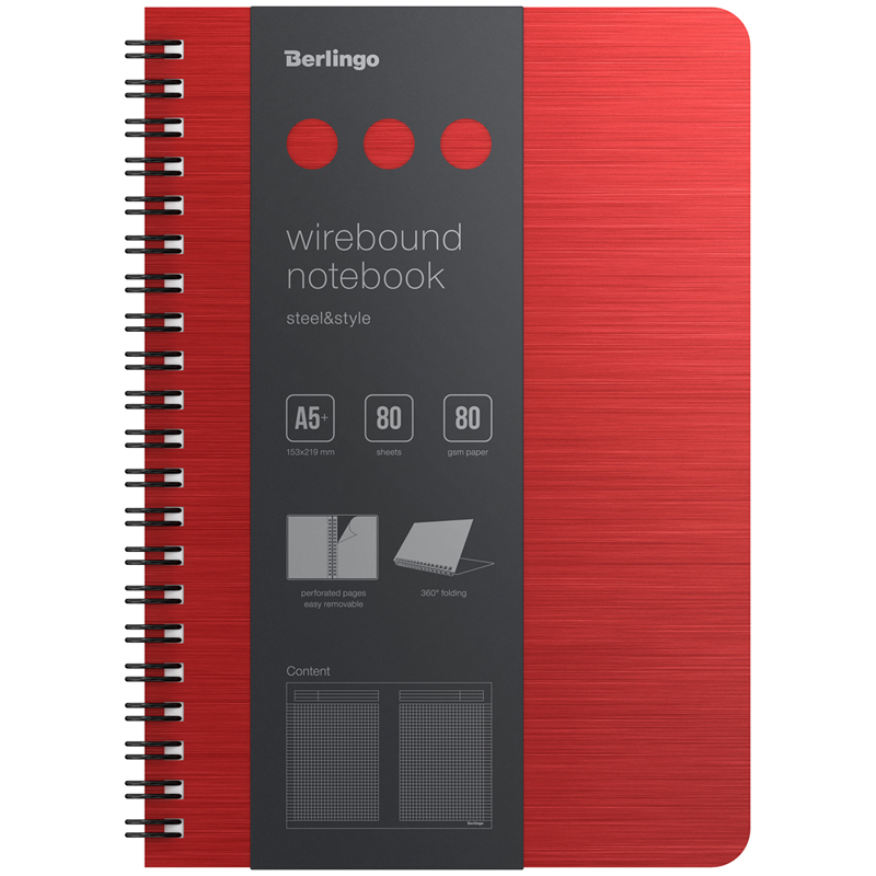 Бизнес-тетрадь Berlingo "Steel&Style" - это практичное, стильное и современное изделие для планирования и записей. Такая бизнес-тетрадь является незаменимым инструментом для деловых людей. Увеличенная толщина обложки (1500мкм) в сочетании с фактурой "сталь", формата А5+. Материал обложки - трехслойный пластик (полифом), надежно защищает внутренний блок от влаги, замятия и загрязнения, обложка устойчива к загрязнениям. Насыщенный красный цвет внешней стороны, в сочетании с черным цветом внутренней поверхности. Вид скрепления – гребень со стильными черными кольцами, который дает возможность раскрывать тетрадь на 360⁰. Бизнес-тетрадь содержит съемную брендированную линейку, которую можно использовать как закладку или разделитель и с легкостью можно перемещать в удобное место. Внутренний блок – высококачественная тонированная бумага, плотностью 80г/м2, 80 листов в клетку, рамка для заголовка, темы или даты, поля с обеих сторон блока на каждом листе, линовка на вылет. Внутренний блок имеет микроперфорацию для ровн