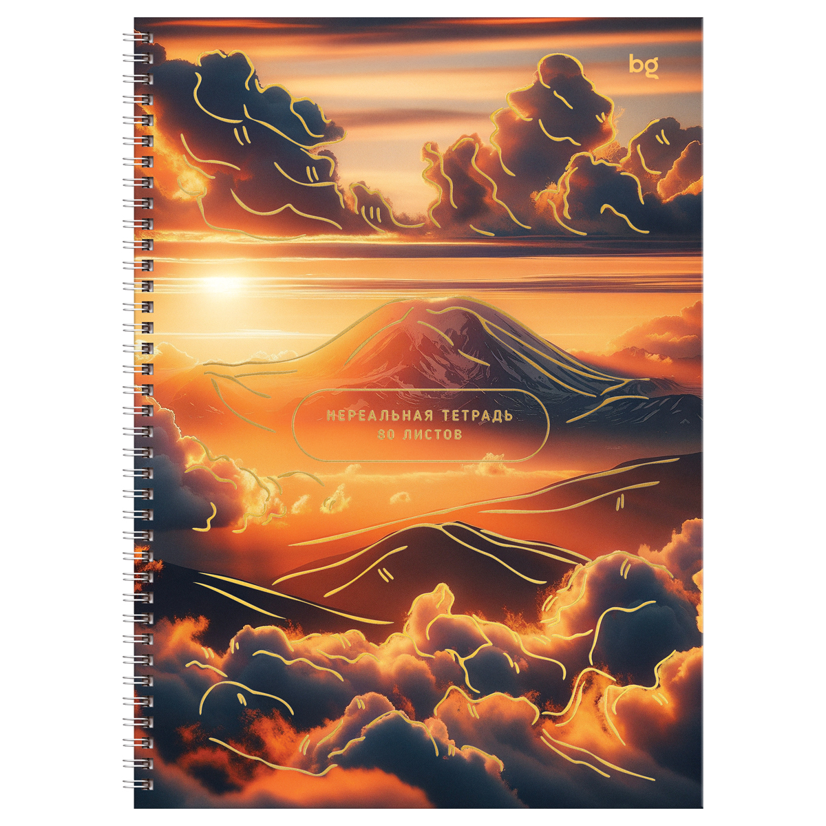 Тетрадь BG серии "Прекрасный вид" формата А4 (205*285 мм) на гребне состоит из 80 листов и отлично подходит для конспектов, работы и ведения документооборота. Внутренний блок – офсетная бумага плотностью 60 г/м², белизна – 100%, линовка – клетка без полей. Твёрдая обложка тетради изготовлена из мелованного картона с матовой ламинацией и тиснением фольгой. • Количество листов: 80; • Линовка: клетка без полей; • Формат тетради: А4(205*285 мм); • Крепление: гребень/спираль; • Материал обложки: ламинированный картон; • Отделка обложки: матовая ламинация + тиснение фольгой.
