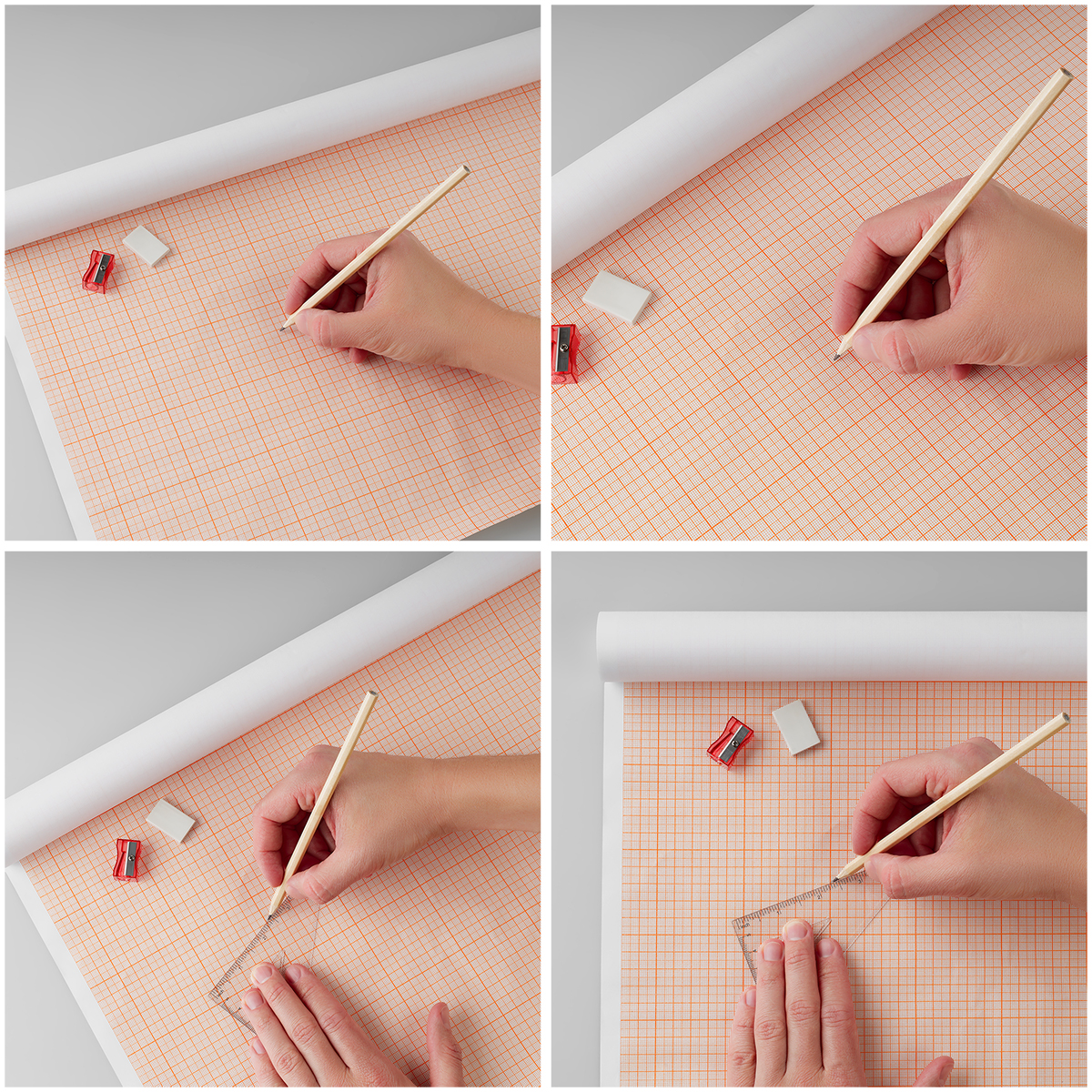 Бумага масштабно-координатная для выполнения чертежей, графиков, схем. Формат А4, 16 листов. Бумага высокого качества, каждый лист оформлен белыми полями. Обложка – мелованный картон, скрепка. Цвет линовки - оранжевый.