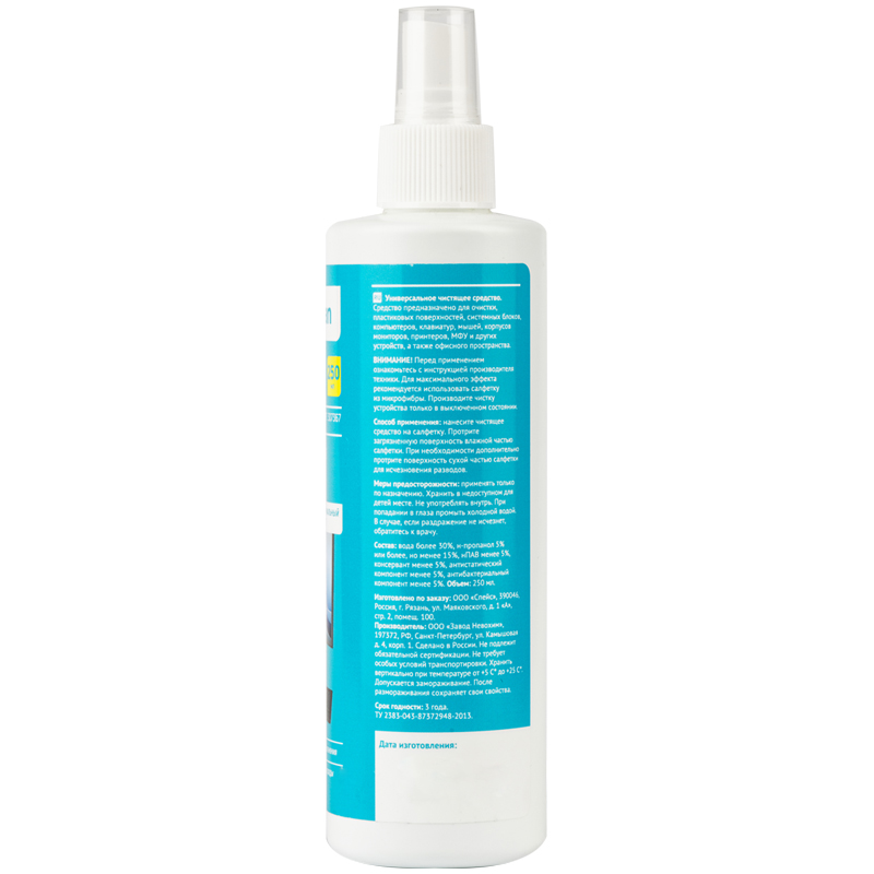 Жидкость-спрей рекомендуется для обработки корпусов всех видов мониторов, системных блоков компьютеров, принтеров, факсов, копировальных аппаратов и другой офисной техники.
