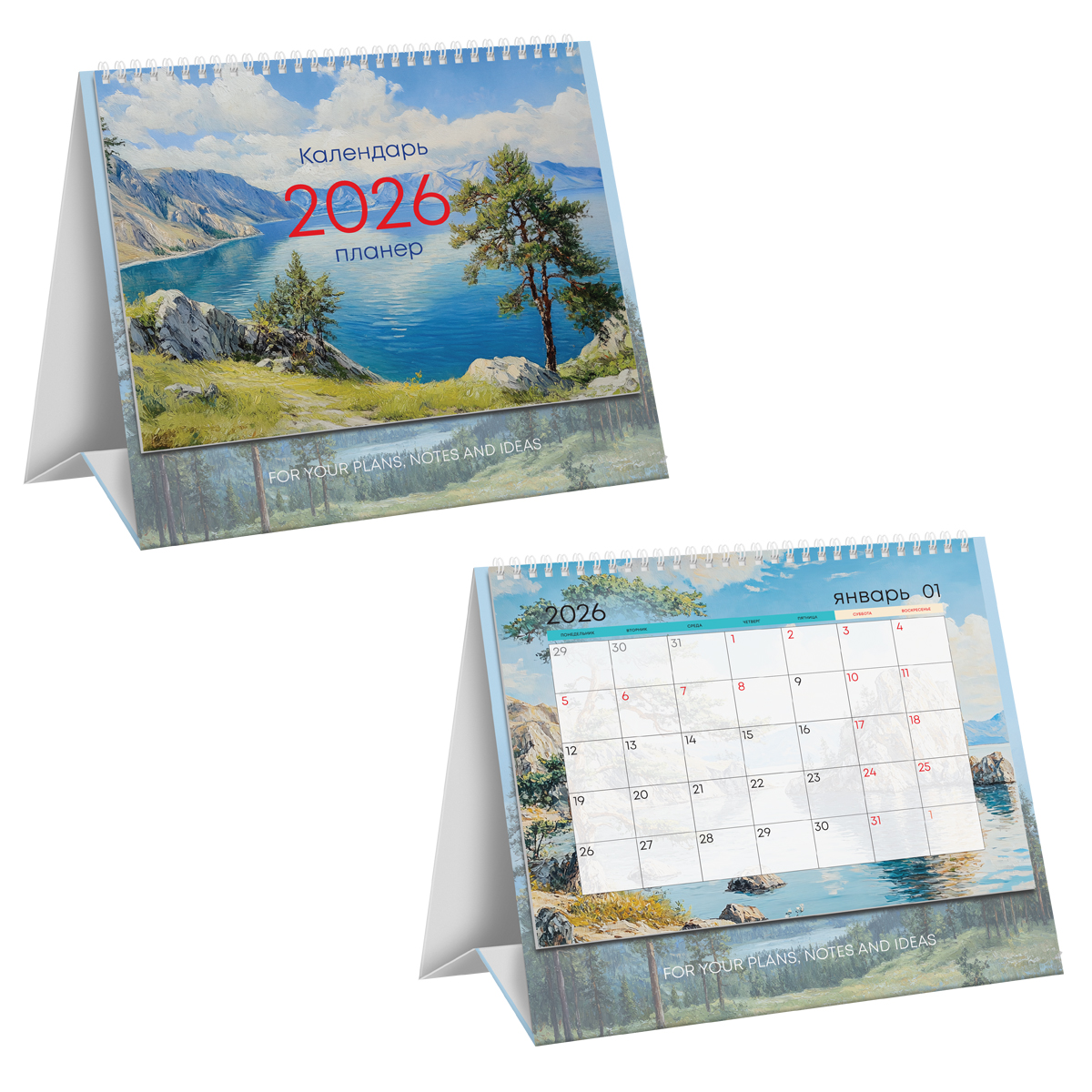 Календарь-планер настольный перекидной BG "Природа" на 2026 год – незаменимая вещь на рабочем столе и отличный помощник для офиса. Размер горизонтального календаря – 190*140 мм, тип скрепления – гребень/спираль. Календарь имеет подложку с рисунком и 12 листов. Календарная сетка-планер будет удобна для записи дел и важных событий. Календарный блок изготовлен из мелованной бумаги плотностью 115 г/м2 с полноцветной печатью. Твердая нижняя подложка изготовлена с использованием переплетного картона толщиной 1,25 мм. Индивидуальная упаковка в пакет с европодвесом. Современному человеку необходимо систематизировать свой день, назначать встречи, быть пунктуальным. Настольный календарь-планер незаменим в этом вопросе. • Размер: 190*140 мм; • Кол-во гребней: 1; • Ориентация: горизонтальная; • Подложка: твердая.