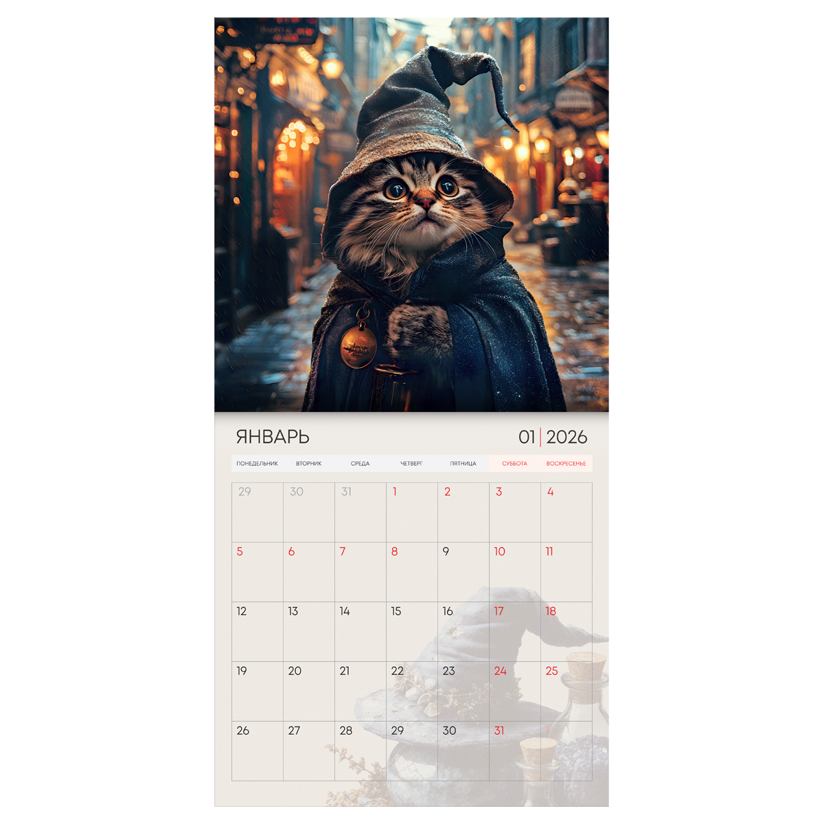 Календарь-домик настольный BG "Коты" на 2026 год – незаменимая вещь на рабочем столе и отличный помощник для офиса. Размер горизонтального календаря – 210*85 мм. Изготовлен из чистоцеллюлозного мелованного картона 300 г/м2 с полноцветной печатью. Современному человеку необходимо систематизировать свой день, назначать встречи, быть пунктуальным. Настольный календарь незаменим в этом вопросе. • Размер: 200*85 мм; • Ориентация: горизонтальная.