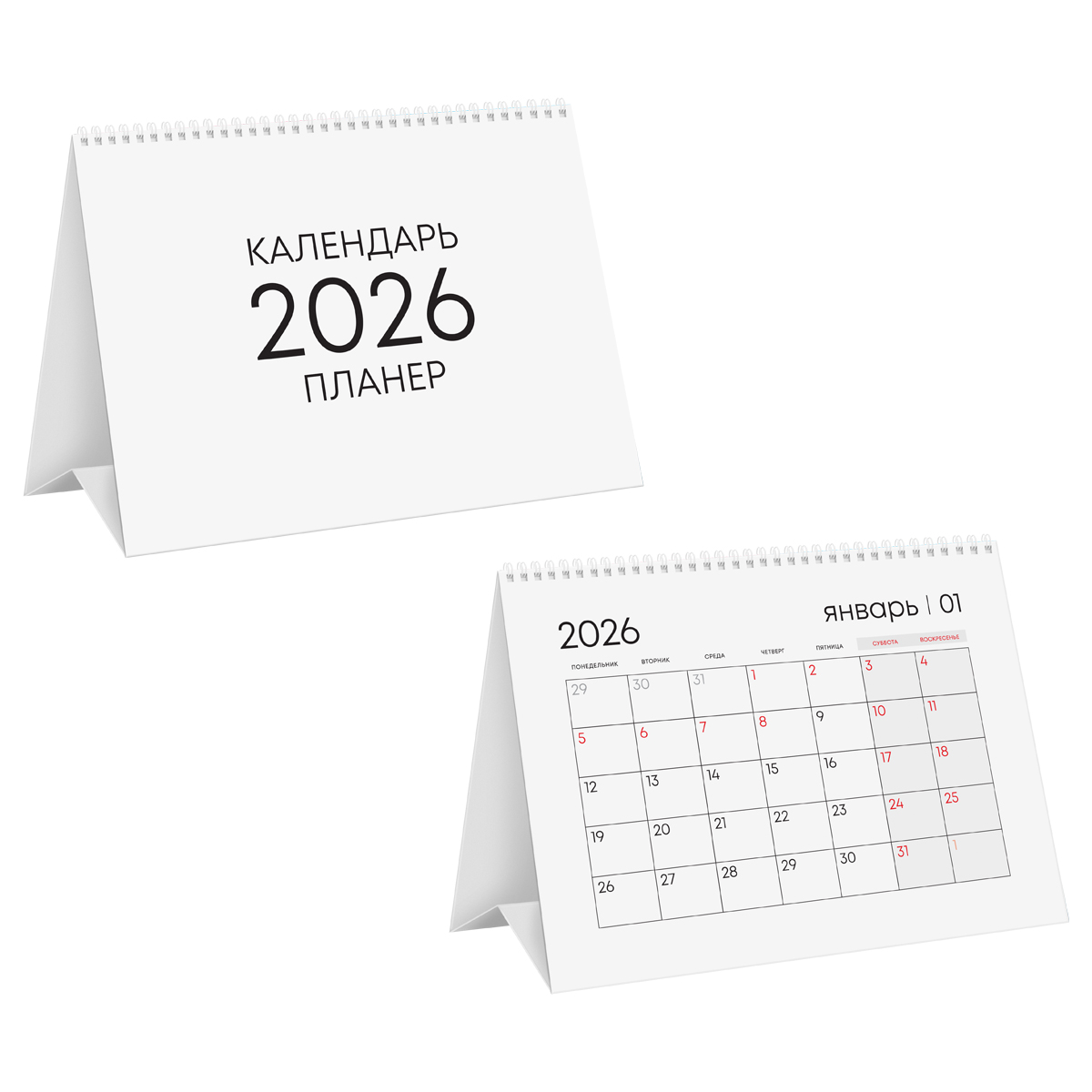 Календарь-планер настольный перекидной BG "Минимализм" на 2026 год – незаменимая вещь на рабочем столе и отличный помощник для офиса. Размер горизонтального календаря – 190*140 мм, тип скрепления – гребень/спираль. Календарь имеет подложку с рисунком и 12 листов. Календарная сетка-планер будет удобна для записи дел и важных событий. Календарный блок изготовлен из мелованной бумаги плотностью 105 г/м2 с полноцветной печатью. Нижняя подложка изготовлена из картона плотностью 320 г/м2. Индивидуальная упаковка в пакет с европодвесом. Современному человеку необходимо систематизировать свой день, назначать встречи, быть пунктуальным. Настольный календарь-планер незаменим в этом вопросе. • Размер: 190*140 мм; • Кол-во гребней: 1; • Ориентация: горизонтальная.