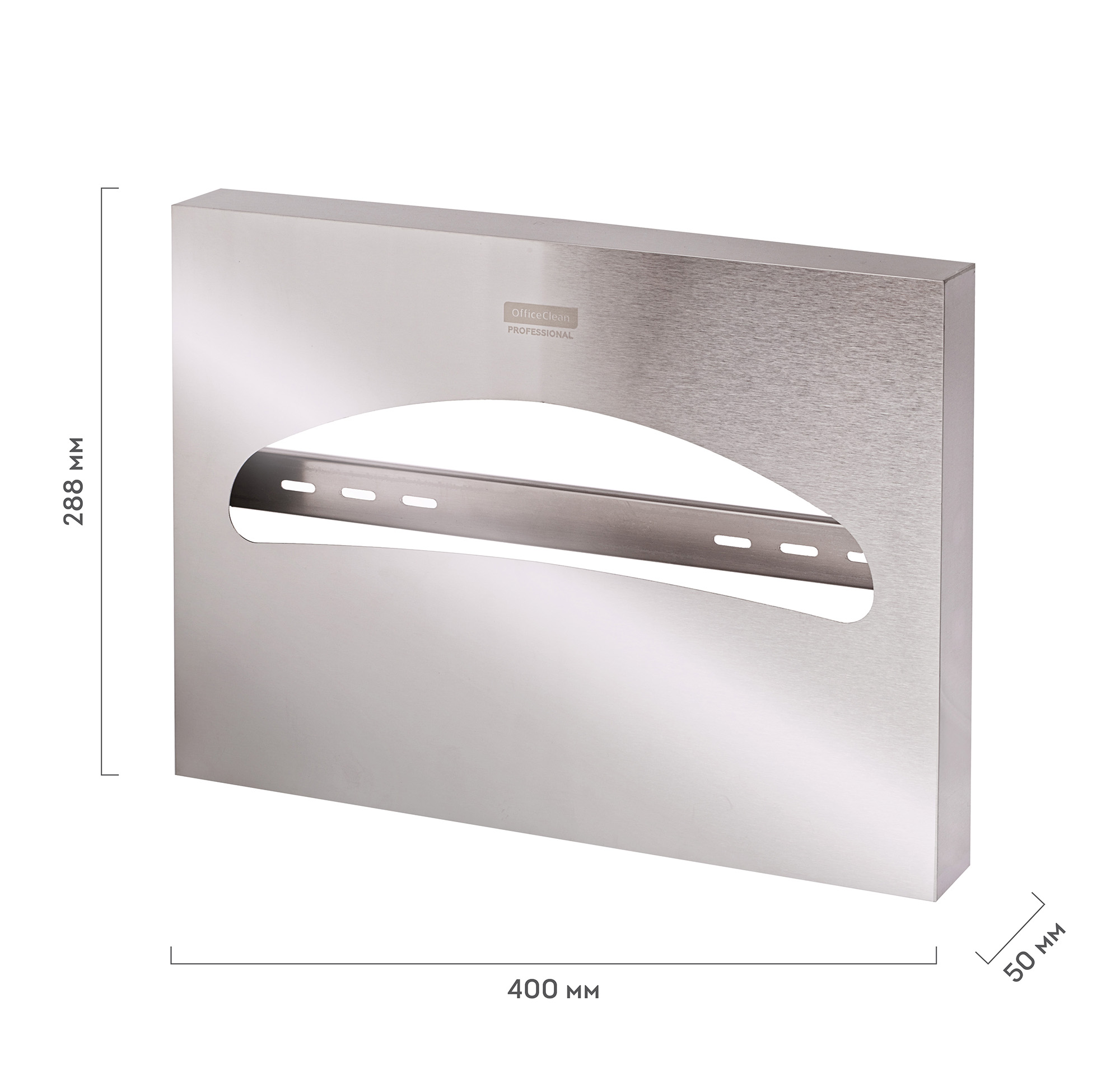 За последнее время, информированность населения о санитарной чистоте возросла на порядок, как следствие, во многих туалетных комнатах с большой проходимостью устанавливаются диспенсеры для одноразовых покрытий на унитаз. Диспенсер для покрытий на унитаз OfficeClean Professional, нержавеющая сталь – стильный, прочный, простой в использовании товар. Отличается компактностью и высокой вместительностью. Диспенсер станет незаменимым помощником в обеспечении защиты от микробов и бактерий, за счет строгого классического стиля впишется в любой интерьер. Металлический корпус станет оптимальным решением для туалетных комнат с большой проходимостью. Серия: нет. Система: TORK V1. Подходящие покрытия: 1/2 сложения. Вместимость покрытий: 1 пач. Антивандальный корпус: да. Комплектация: крепежные материалы. Сочетается с расходными материалами других производителей: да. Материал корпуса: металл. Цвет корпуса: нержавеющая сталь (матовый). Высота: 288 мм. Ширина: 400 мм. Глубина: 50 мм. Арт
