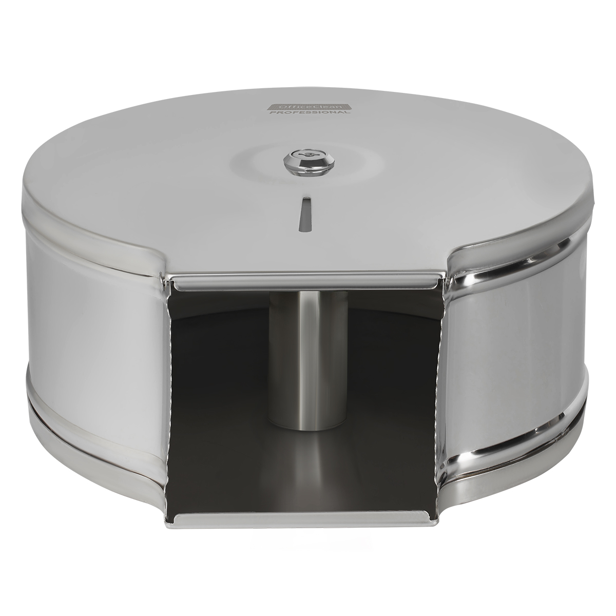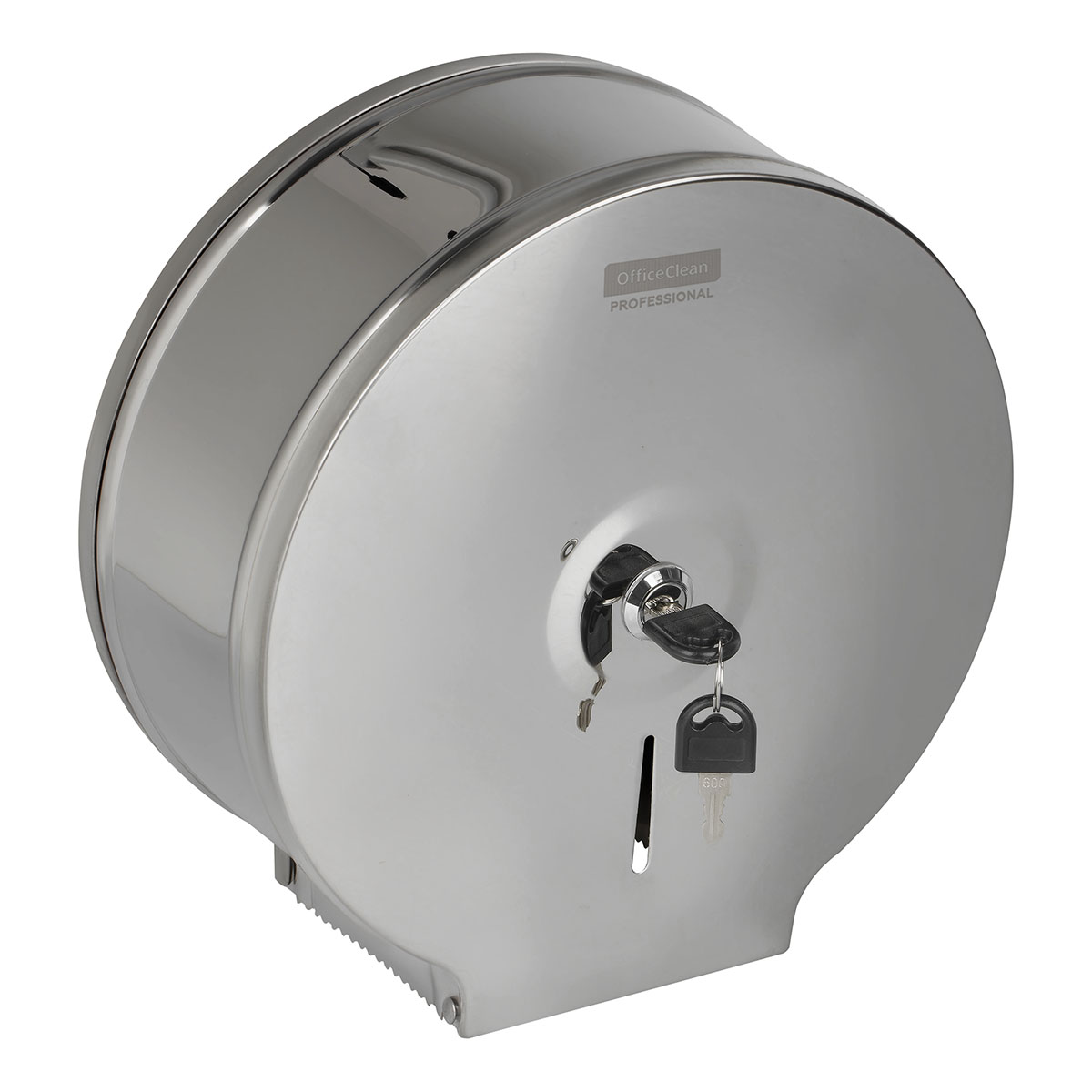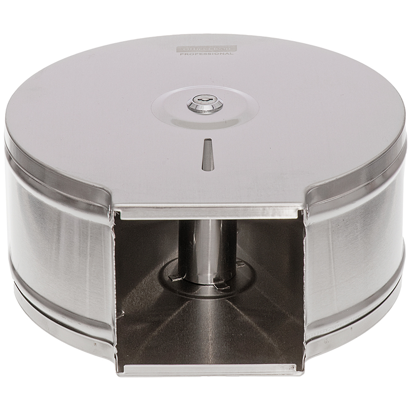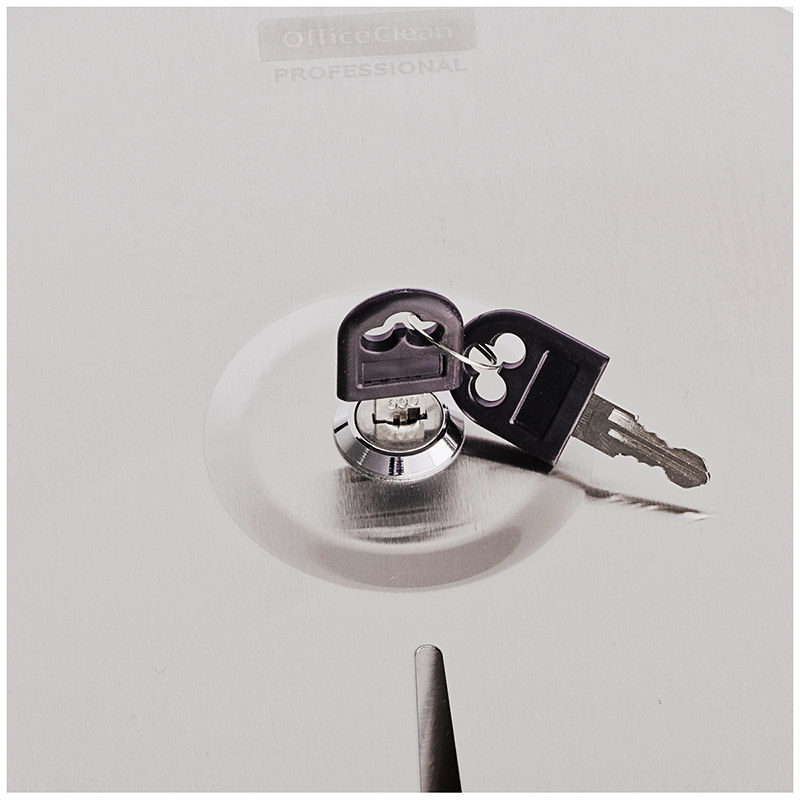 Удобно, стерильно, гигиенично – все это о диспенсере для туалетной бумаги OfficeClean Professional из нержавеющей стали. Товар органично впишется в помещение с любым дизайном, одновременно повышая уровень безопасности. Преимуществами товара являются простота в эксплуатации, надежность конструкции и обеспечение высокого уровня гигиены. Металлический антивандальный корпус станет оптимальным решением для туалетных комнат с большой проходимостью, поможет выдержать не только физическое воздействие, но и предотвратит кражу расходного материала. Вид расходных материалов: рулонный с втулкой. Серия: нет. Система : T2. Антивандальный корпус: да. Вместимость: 1 пач./рулонов. Контроль остатка бумаги: да. Тип закрывания: металлический ключ. Удобные зубцы для бесконтактного отрыва бумаги: да. Сочетается с расходными материалами других производителей: да. Размещение: настенный. Комплектация: ключи, крепежные материалы. Материал замка: металл. Материал корпуса: металл. Цвет корпуса: нержавеющая сталь (мато