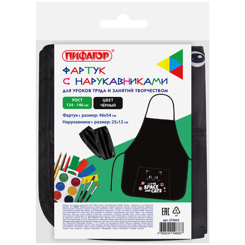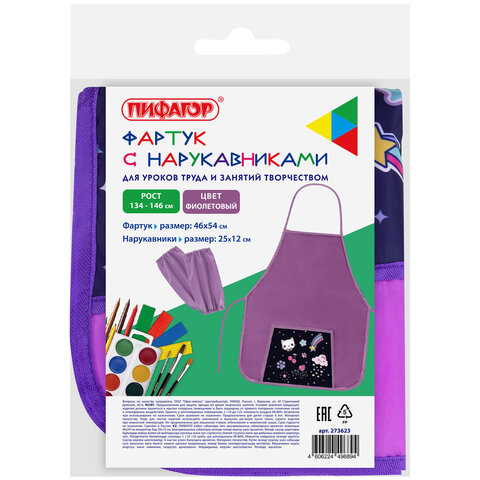 Фартук с нарукавниками для уроков труда ПИФАГОР - незаменимая вещь для защиты одежды во время уроков труда и занятий творчеством в школе, детском саду и дома. Предусмотрен для многоразового использования.