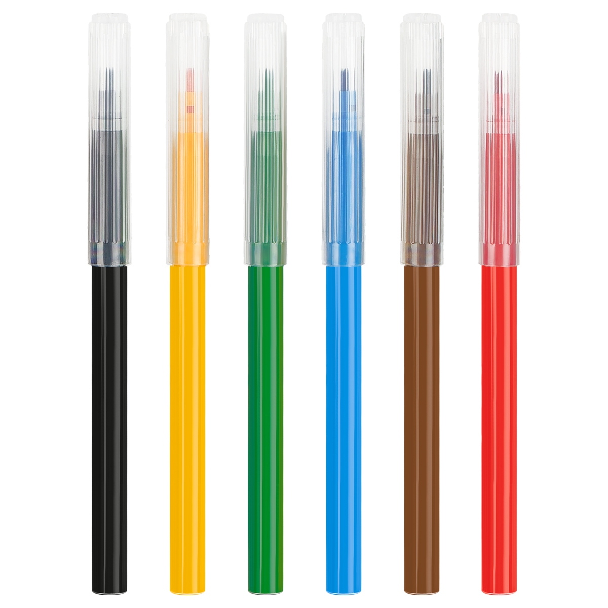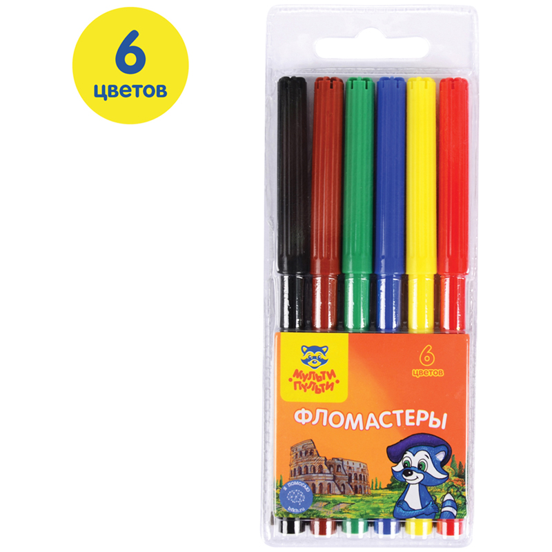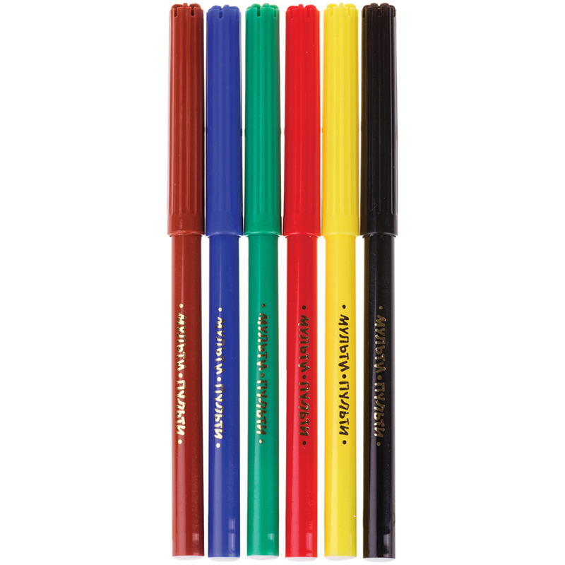 Набор фломастеров. 6 ярких цветов. Вентилируемый колпачок, смываемые чернила на водной основе. Упакованы в картонную коробку с подвесом.