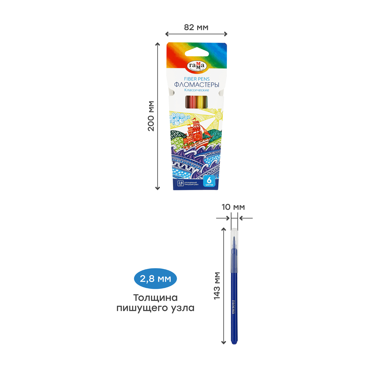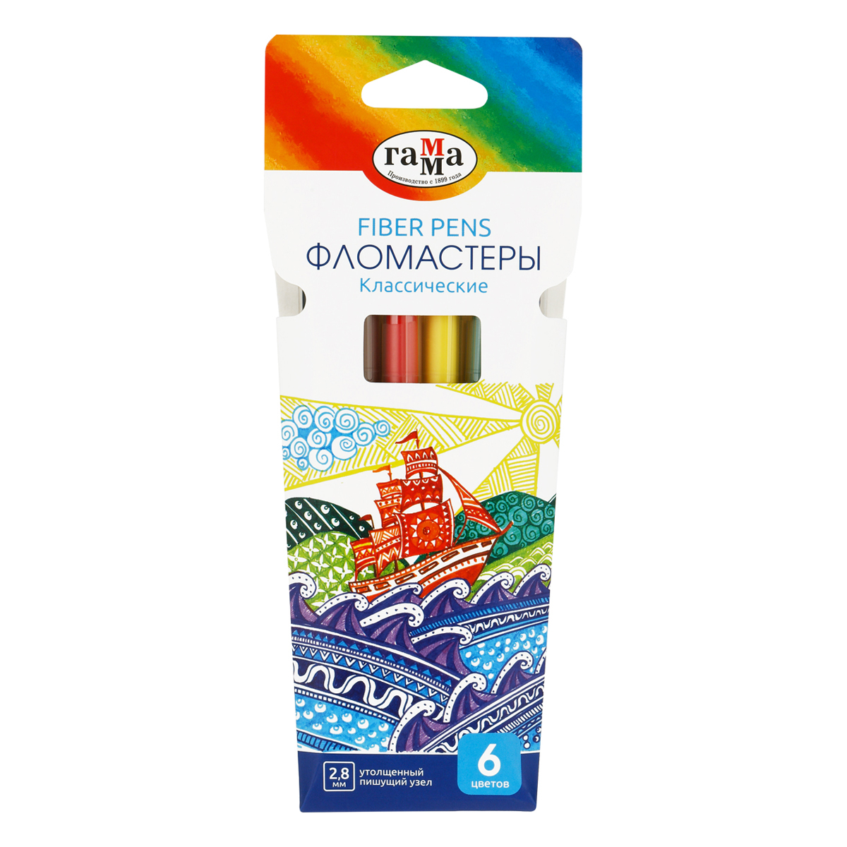 Фломастеры ГАММА серии "Классическая" - это удобная упаковка-конверт, насыщенные цвета и утолщенный пищущий узел до 2,8 мм, который позволяет наносить как тонкие, так и толстые линии, для создания ярких рисунков. В наборе 6 цветов. Чернила на основе воды и пищевых красителей, легко смываемые с одежды и рук, избавят от хлопот после рисования. Широкая цветовая палитра дает ребенку неограниченные возможности для творчества, развивая его художественные способности, а яркая, красочная упаковка может быть использована в качестве ориентира для воспроизведения ребенком. Упакованы в картонный футляр. • Количество цветов: 6; • Тип наконечника: конический.