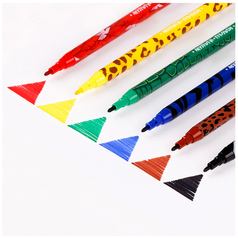 Легкосмываемые чернила, вентилируемый колпачок, не токсичны. На белых корпусах фломастеров нанесен оригинальный рисунок, который привлекает дополнительное внимание к продукции. Упаковка – блистер. Для детей старше 3-х лет.