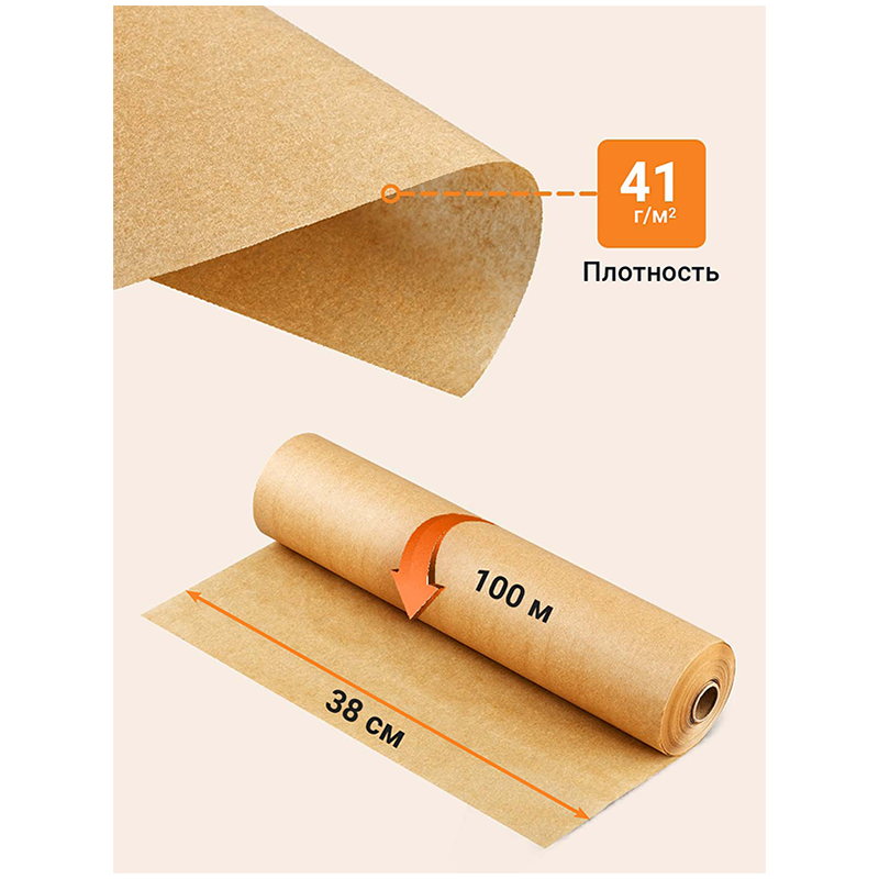 Бумага (пергамент) для выпечки OfficeClean, белая, 38см * 100м, 38 г/м2, в рулоне, в пленке, без сил