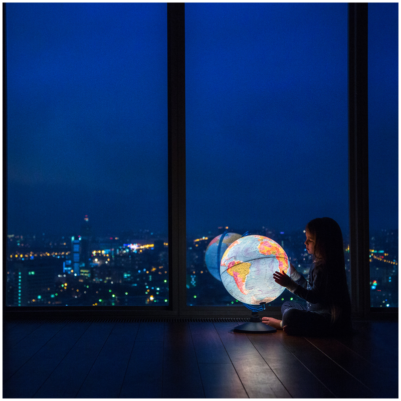 Глобус включает в себя две карты: с выключенной подсветкой вы видите физическую карту мира, при включении подсветки – политическую карту мира. Это делает глобус практичным и долговечным в использовании – пригодится школьнику для изучения окружающего мира, географии, истории и экономики. Размер глобуса небольшой 21 см – идеально для размещения на рабочем столе. Подсветка от сети, шнур снабжён удобным переключателем. При необходимости лампу внутри глобуса легко заменить. Глобус упакован в фирменную подарочную коробку.