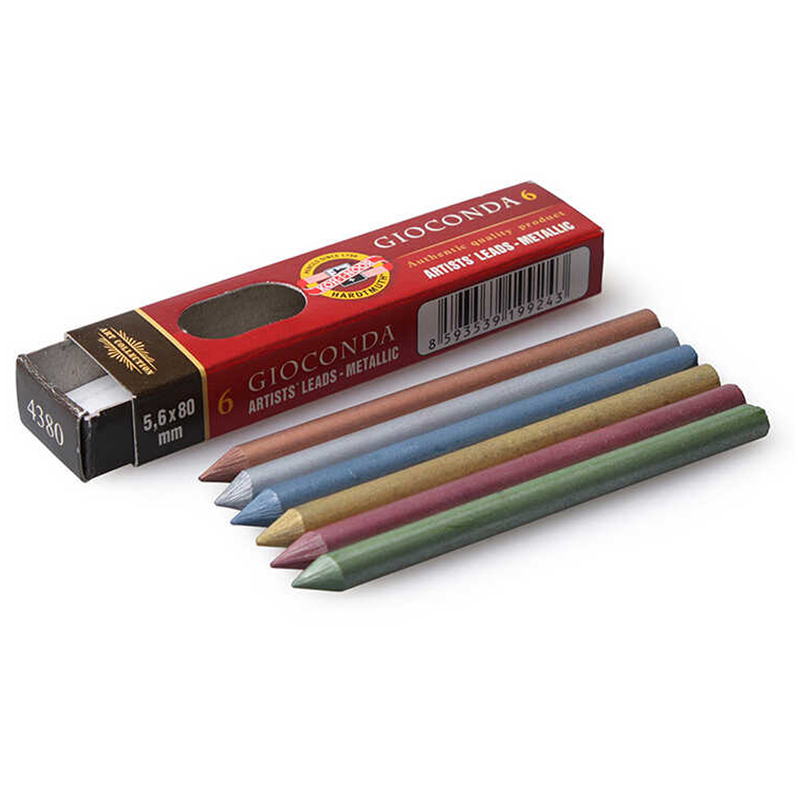 Грифели для цанговых карандашей GIOCONDA цвета металлик это прочный, но при этом мягкий графический материал, предназначенный для рисования. Хорошо сочетается с пастельными карандашами, а также сухой пастелью, особенно на темной бумаге. Данные стержни можно использовать самостоятельно, благодаря толщине 5,6, но в цанговом карандаше они не пачкают рук, а также снижен риск их поломки. В наборе 6 штук, цвета: синий, малиновый, зеленый, красный, золотой, серебряный.