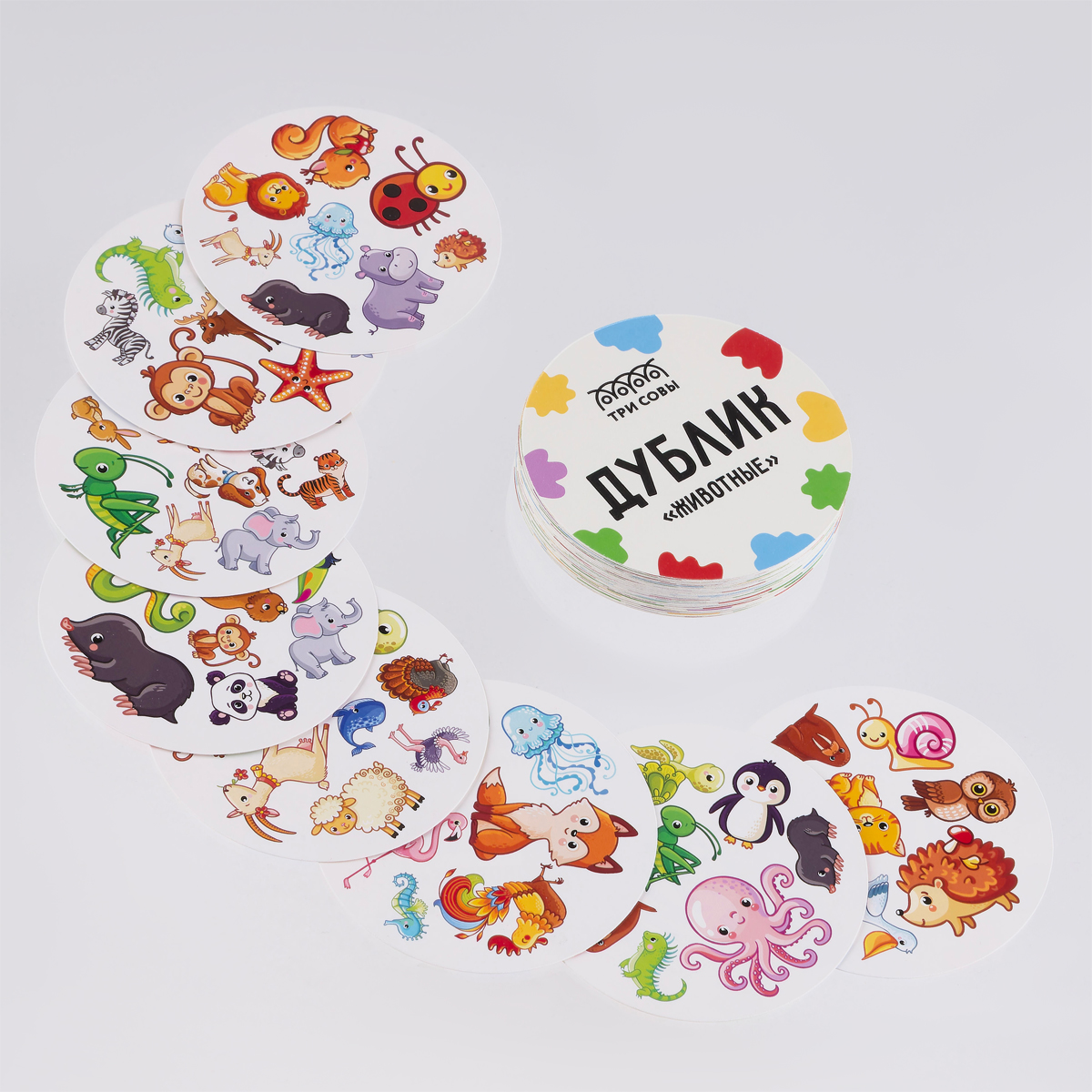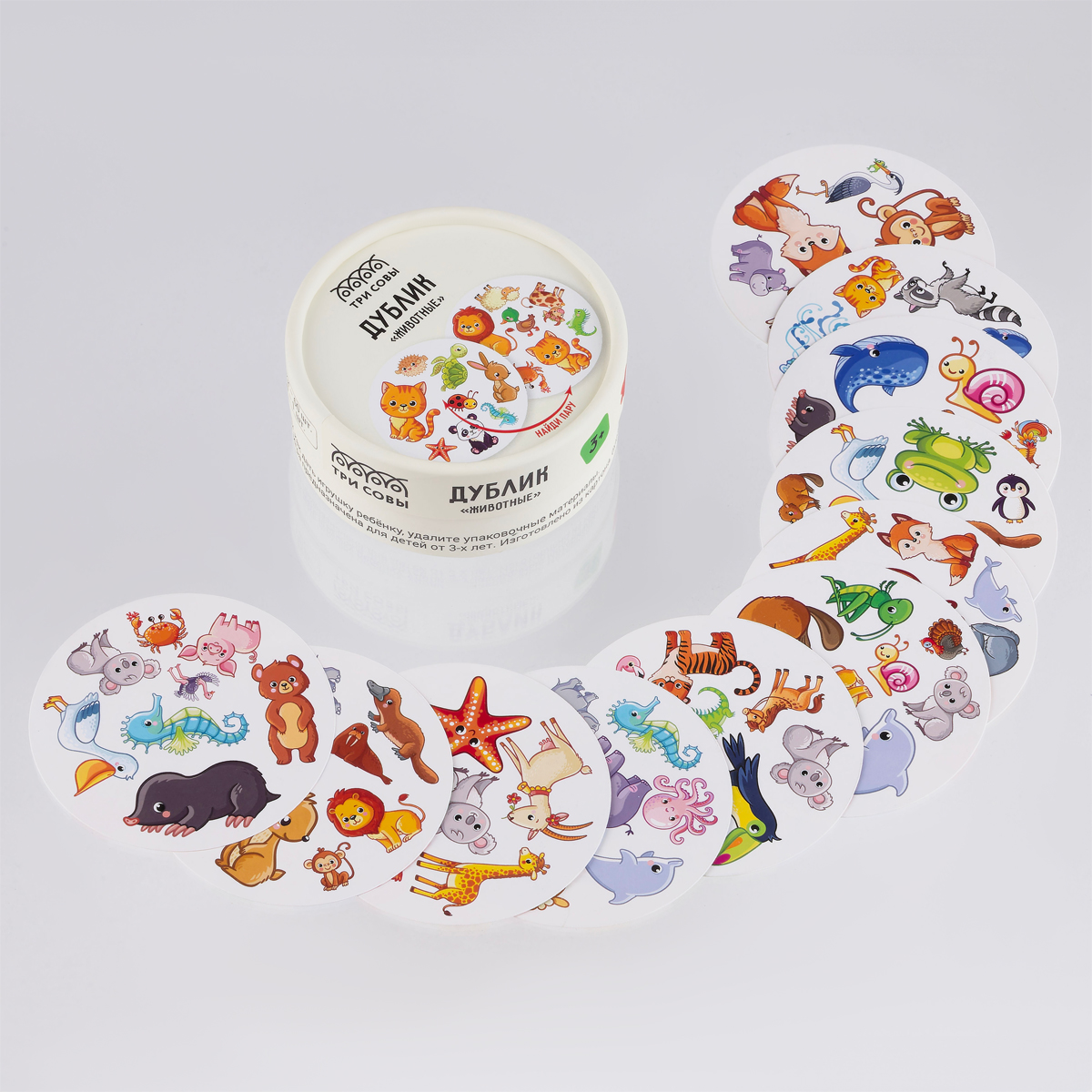 «Дублик» – это игра, которая сможет развеселить и увлечь каждого! В наборе «ТРИ СОВЫ» карточки с разными картинками. Игрокам необходимо найти совпадающие изображения быстрее всех. В процессе игры участники хорошо потренируют память; скорость и внимание. В правилах описаны несколько вариантов игры в «Дублик». Игра подойдет для 2-6 игроков. В комплект игры входит 60 карт и правила игры. Вперёд за победой!