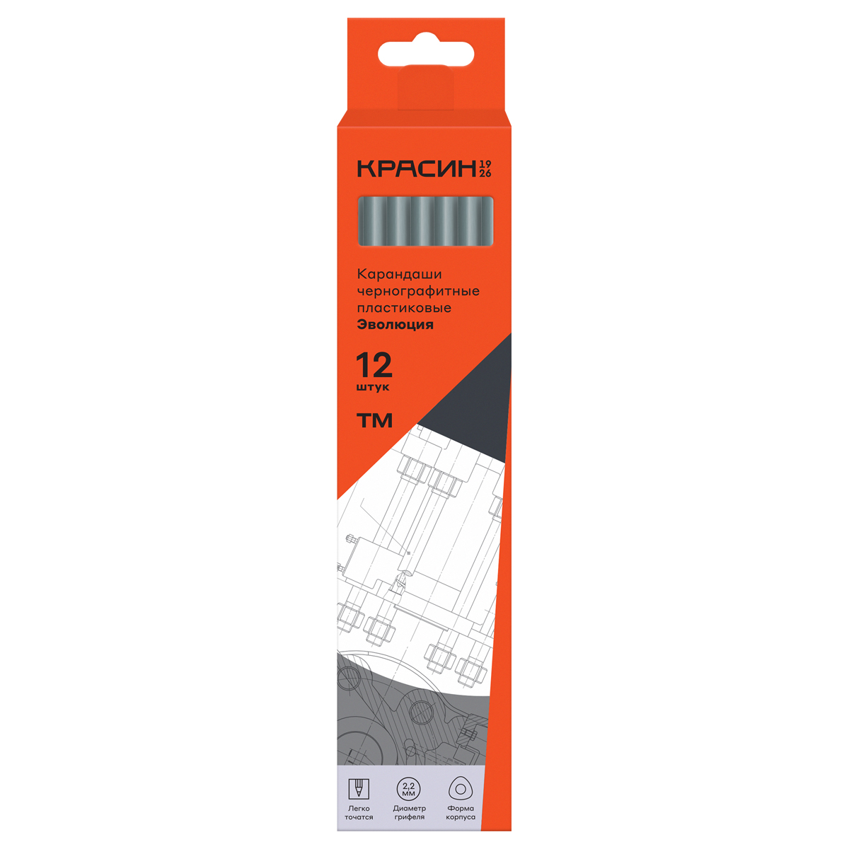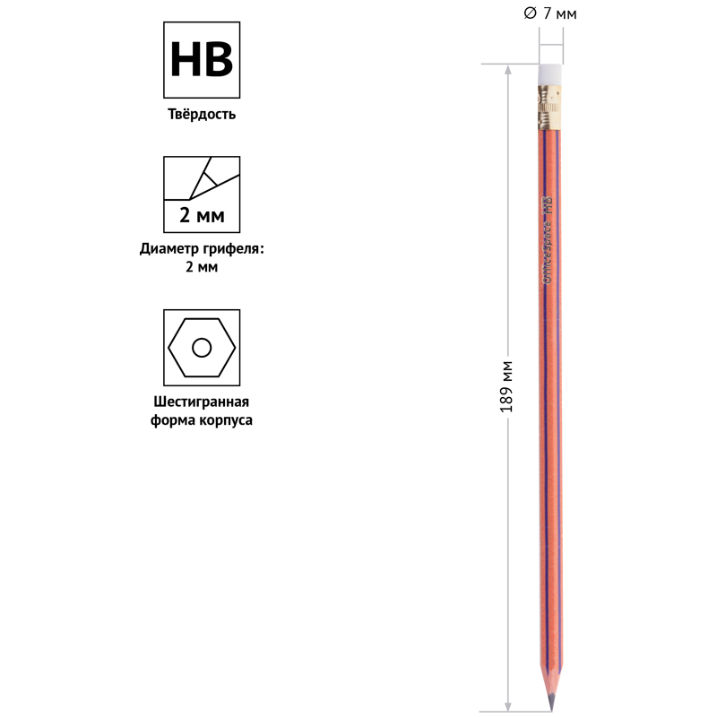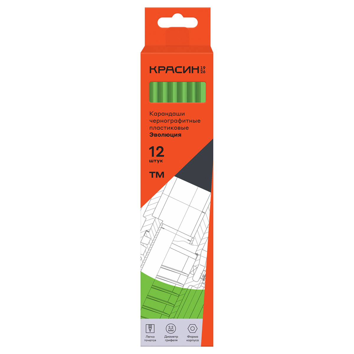 Чернографитный заточенный карандаш. Материал корпуса: пластик. Отлично подходит для выполнения чертежных, технических, графических и художественных работ. Твердость HB, шестигранная форма корпуса. Упаковка в картонную коробку с европодвесом, есть штрих-код на корпусе.