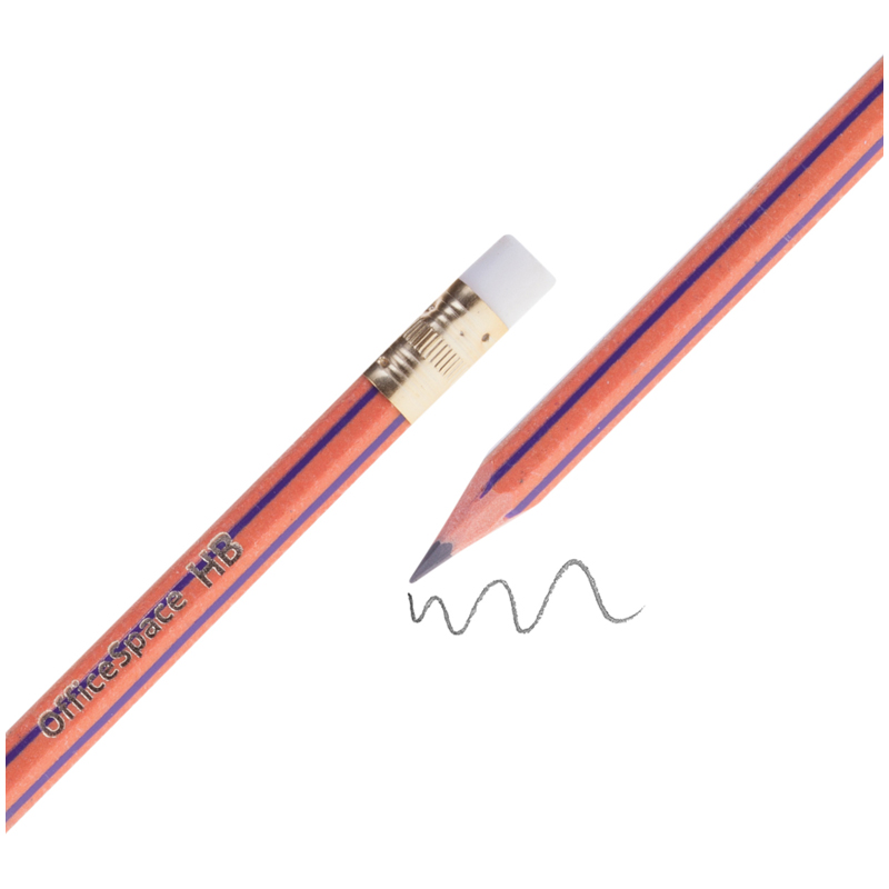 Пластиковый чернографитный карандаш с ластиком. Полосатый корпус. Твердость HB. Заточен.