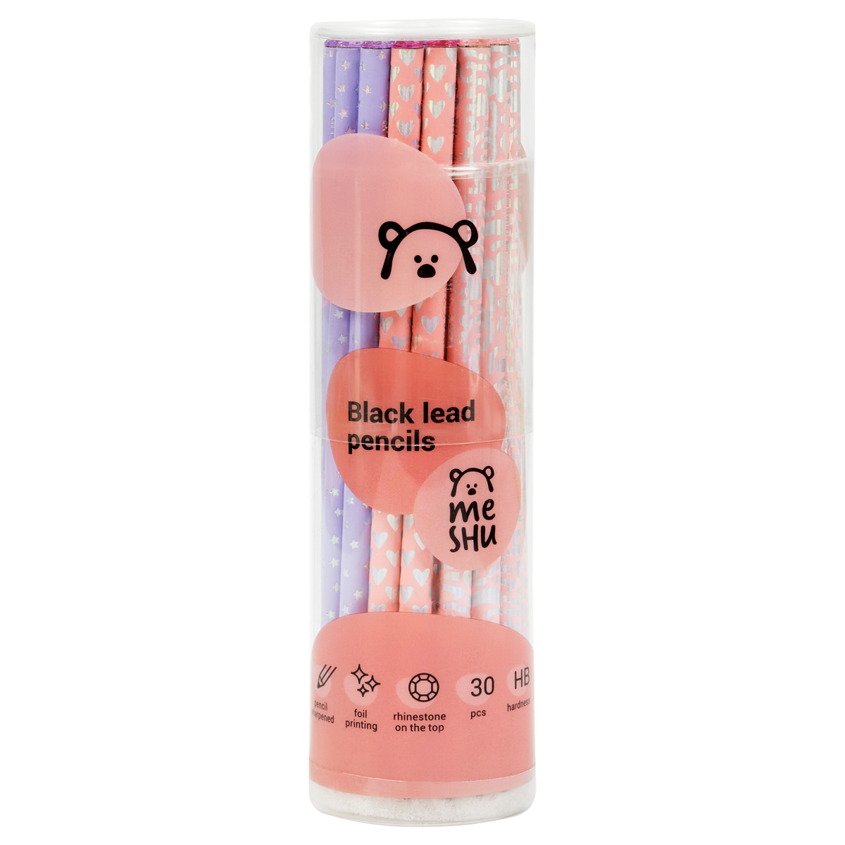 Чернографитные карандаши MESHU с фольгированной печатью на корпусе и стразами на топе станут лучшими помощниками в школе или офисе. Карандаши представлены в круглом корпусе в трех разных дизайнах и упакованы в пластиковую тубу по 30 штук. Твердость грифеля – HB, диаметр – 2,2 мм, длина карандаша – 179 мм. Изготовлены из светлого дерева. Стильные и элегантные дизайны серии GOLD с золотым фольгированием понравятся ценителям канцелярии, которая привлекает внимание. На корпусе есть штрихкод, а на топе стразы в тон второго цвета печати на карандаше. Карандаши легко затачиваются и идеально подойдут для черчения и рисования. Письмо с карандашами MESHU мягкое и уверенное. Они заточены и уже готовы к работе. • Диаметр грифеля: 2,2 мм; • Твердость: HB; • Заточенный грифель: да; • Форма корпуса: круглая; • Цвет дерева: светлый; • Цвет корпуса: ассорти; • Количество штук в упаковке: 30; • Тип упаковки: пластиковая туба.