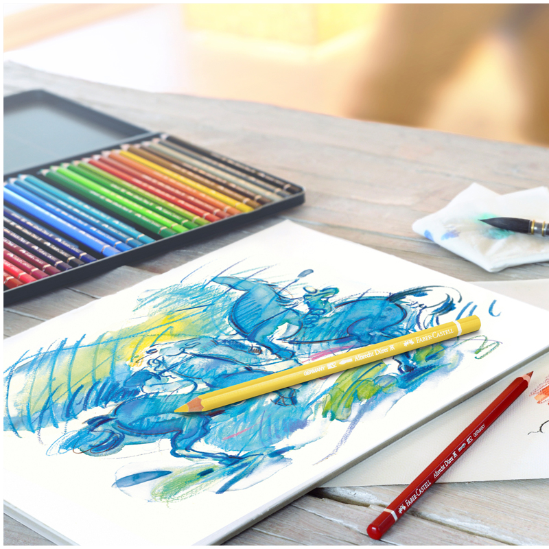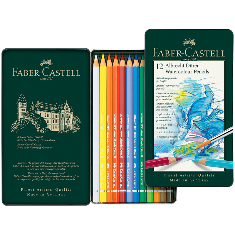 На протяжении многих лет художники всего мира ценят акварельные карандаши Albrecht Dürer от легендарного немецкого производителя Faber-Castell за их исключительные свойства. Высококачественные материалы в сочетании с более чем 250-летним опытом позволили изготовить карандаши, которые создают непревзойденные акварельные эффекты, отличаются выразительными цветами и устойчивостью к выцветанию. Палитра карандашей Albrecht Dürer состоит из 120 оттенков высокой светостойкости, которые можно приобрести как в наборах, так и поштучно, что так важно для профессиональных художников. Благодаря специальной технологии проклеивания грифеля (SV), грифель не ломается при падении и затачивании. Толщина грифеля: 3,8 мм. Карандаши помещены в прочную металлическую коробку, удобную для хранения и транспортировки.