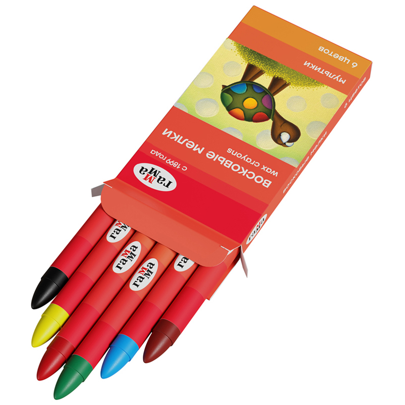 Набор из 6 ярких цветных восковых мелков ГАММА серии «Мультики» отлично подойдёт для рисования на бумаге, картоне и любой шероховатой поверхности. Мелки имеют круглую форму, длина мелка составляет 90 мм, а диаметр корпуса — 8 мм. В наборе 6 ярких цветов: жёлтый, зелёный, синий, красный, чёрный, коричневый. Они идеальны для первых начинаний ребенка в рисовании и раскрашивании, так как они удобно лежат в руке. Мелки производятся на основе натуральных растительных компонентов: воска и пигментов. Мелки не липнут к рукам и не пачкают их, не имеют выраженного химического запаха. Каждый мелок обёрнут в бумажную гильзу и уже заточен. Набор упакован в яркую картонную коробку с мультяшными героями, которая особенно понравится ребёнку. • Количество цветов: 6; • Количество штук: 6; • Форма: круглая; • Длина мелка: 90 мм; • Диаметр мелка: 8 мм