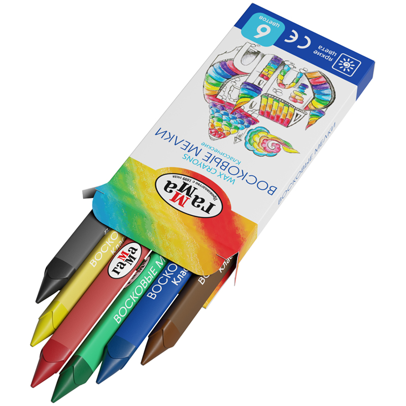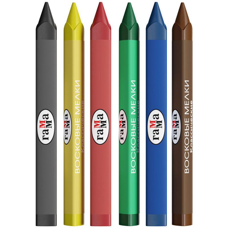Набор из 6 восковых мелков ГАММА серии «Классическая» отлично подойдёт для рисования на бумаге, картоне и любой шероховатой поверхности. Мелки имеют эргономичную трёхгранную форму, длина мелка составляет 90 мм, а диаметр корпуса — 8 мм. В наборе 6 ярких цветов: жёлтый, зелёный, синий, красный, чёрный, коричневый. Они идеальны для первых начинаний ребенка в рисовании и раскрашивании, так как они удобно лежат в руке. Мелки производятся на основе натуральных растительных компонентов: воска и естественных пищевых красителей. Мелки не пачкают руки, не липнут, не имеют выраженного химического запаха. Каждый мелок обёрнут в бумажную гильзу и уже заточен. Набор упакован в картонную коробку с европодвесом. • Количество цветов: 6; • Количество штук: 6; • Форма: трёхгранная; • Длина мелка: 90 мм; • Диаметр мелка: 8 мм