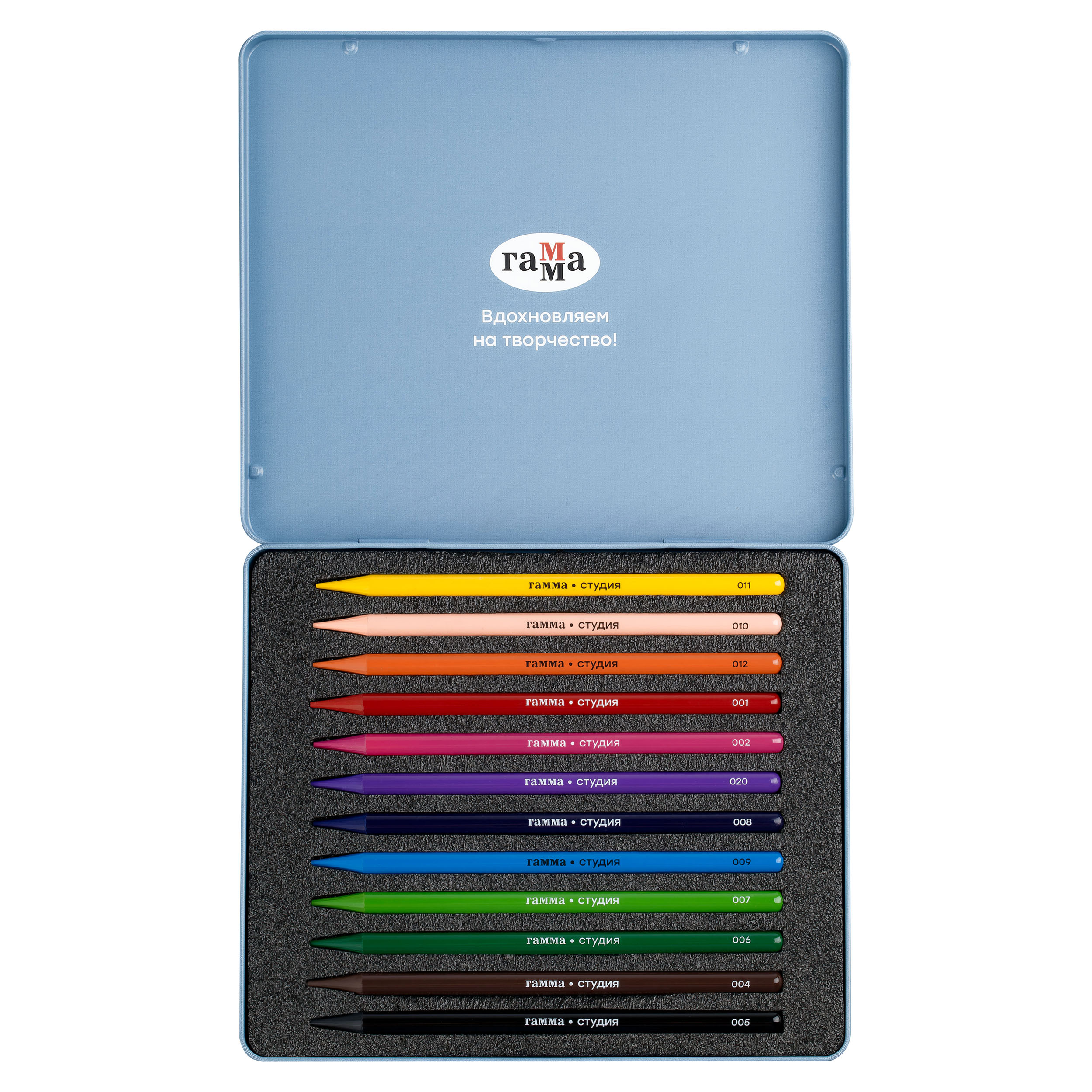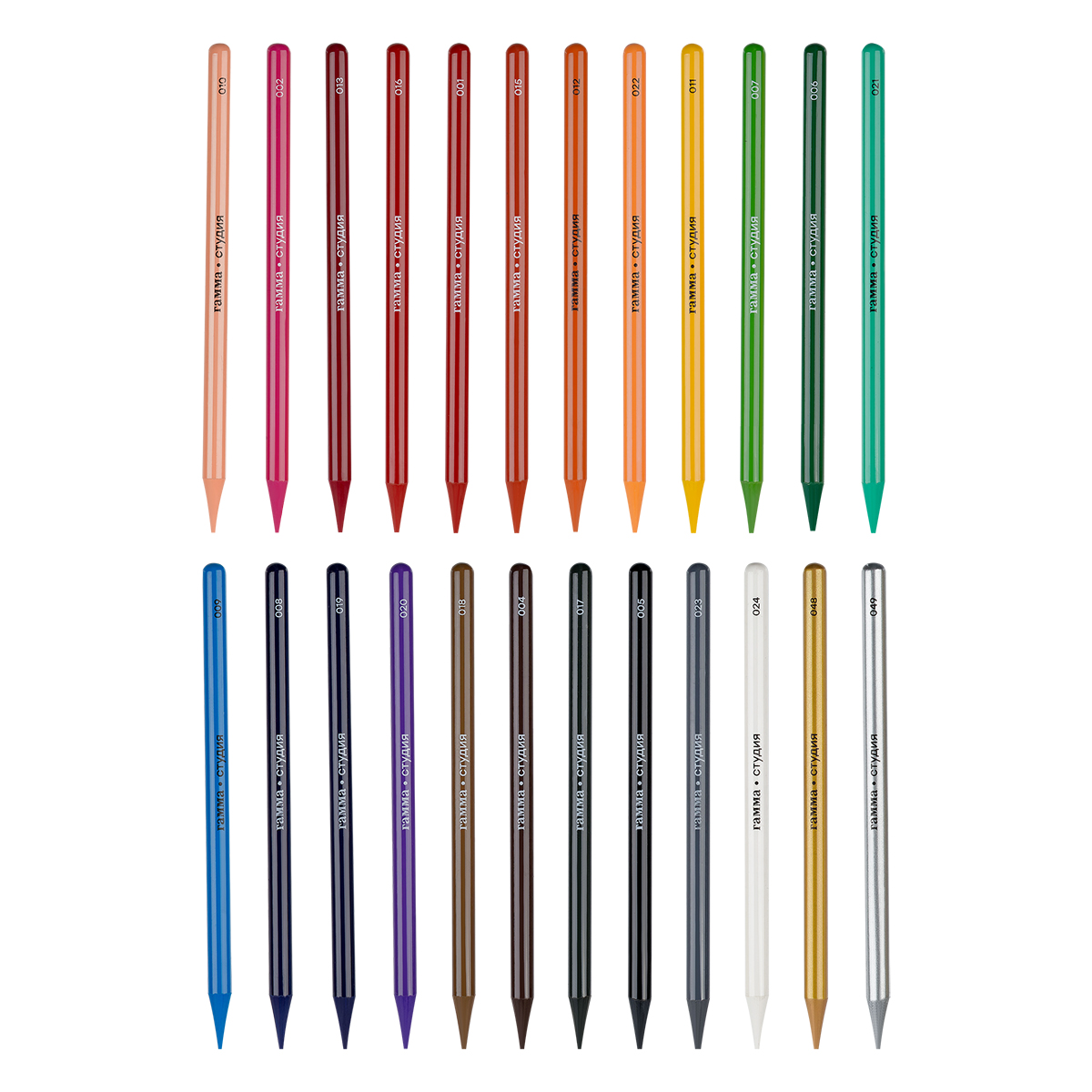 Художественные цветные карандаши «Студия» изготавливаются из высококачественных тонкотертых пигментов, что обеспечивает высокую интенсивность и чистоту цвета. Грифель выполнен по технологии двойного проклеивания. Благодаря этому грифель не ломается, не крошится, затачивается до максимальной остроты. Все цвета отлично смешиваются между собой, наслаиваются друг на друга, позволяя создавать плавные переходы и градиенты. Карандашами «Студия» прорисовывать как четкие контуры, мелкие графичные детали, так и тонкие переливы. Корпус карандаша круглый, выполнен из липы. Диаметр грифеля- 3,3 мм. Диаметр карандаша- 7,7 мм.