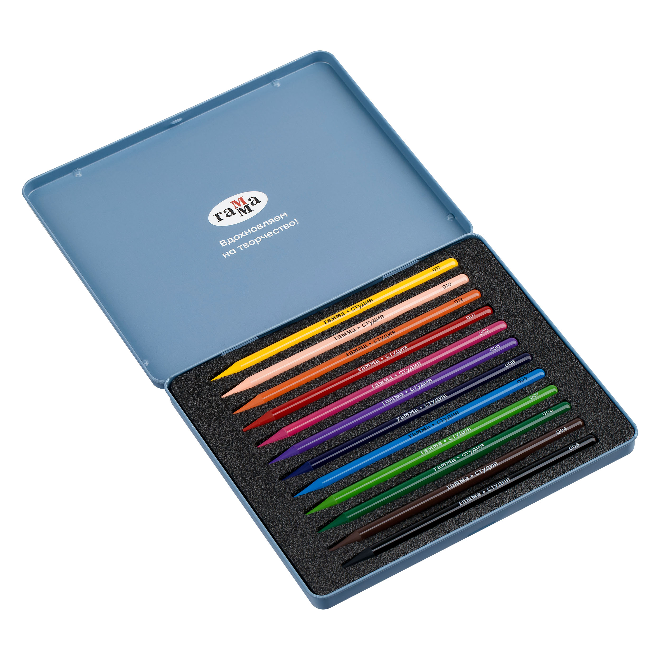 Мягкие профессиональные цветные карандаши специально подобранной палитры серых оттенков. Обладают высокой светостойкостью, смешиваемость до 8 слоев. Карандаши упакованы в блистер в открытой металлической коробке, благодаря чему вся палитра видна при покупке.