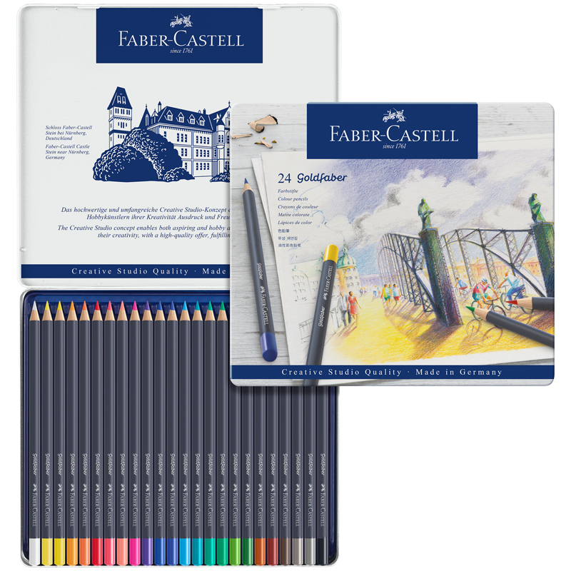Цветные карандаши Goldfaber от легендарного немецкого производителя Faber-Castell. Карандаши поражают своими мягкими и насыщенными цветами, которые плавно накладываются друг на друга, позволяя достигать различных визуальных эффектов. Высококачественные материалы и производство с использованием самых инновационных технологий обеспечивают отличную светостойкость, важную для начинающих и профессиональных художников. Благодаря специальной технологии проклеивания грифеля (SV), грифель не ломается при падении и затачивании. Толщина грифеля: 3,3 мм. Карандаши помещены в прочную металлическую коробку удобную для хранения и транспортировки.