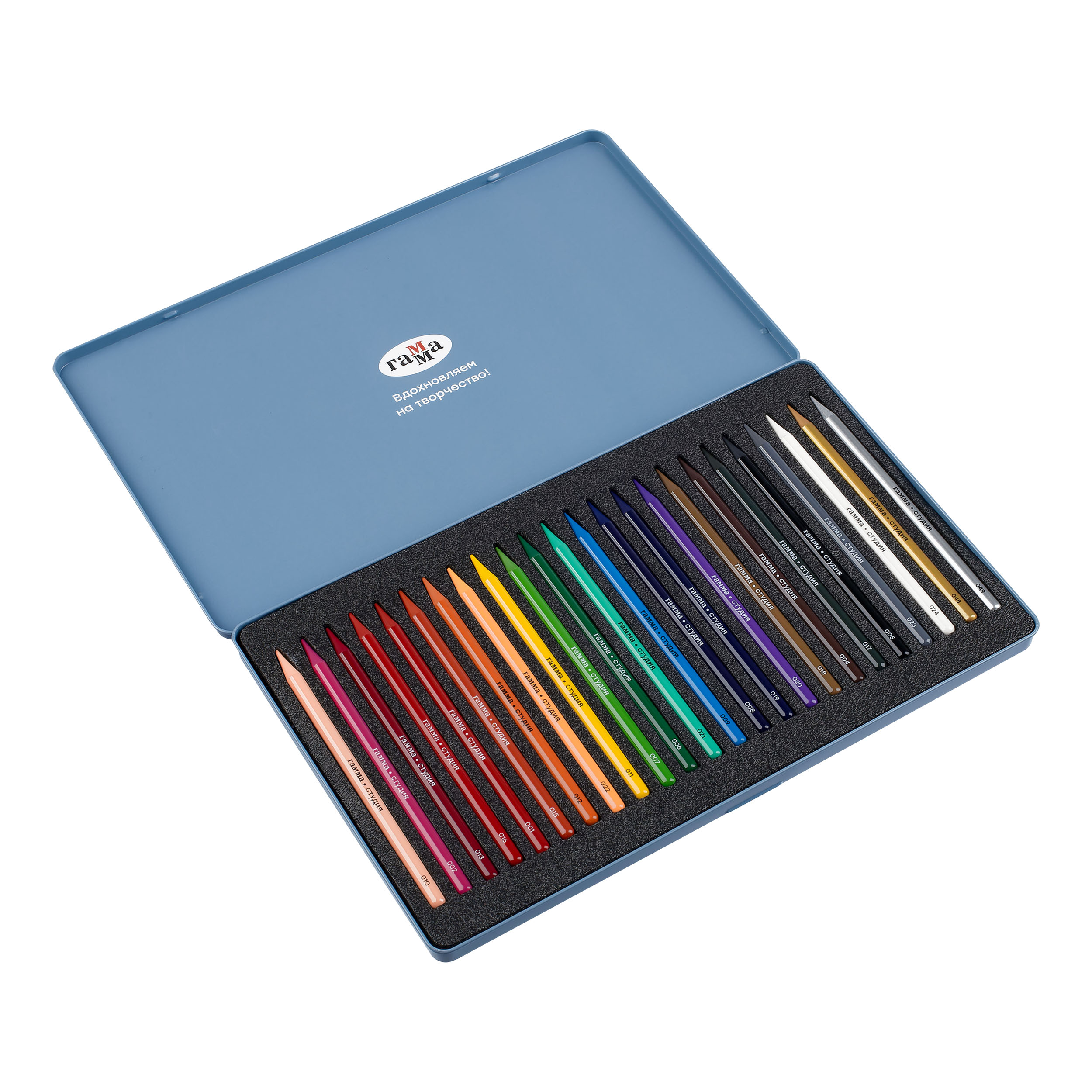 Художественные цветные карандаши в металлическом пенале. Насыщенные пигментом грифели позволяют рисовать яркие линии. Рисунок, сделанный карандашами серии Polycolor, отличается высокой светостойкостью. Корпус карандаша изготовлен из калифорнийского кедра