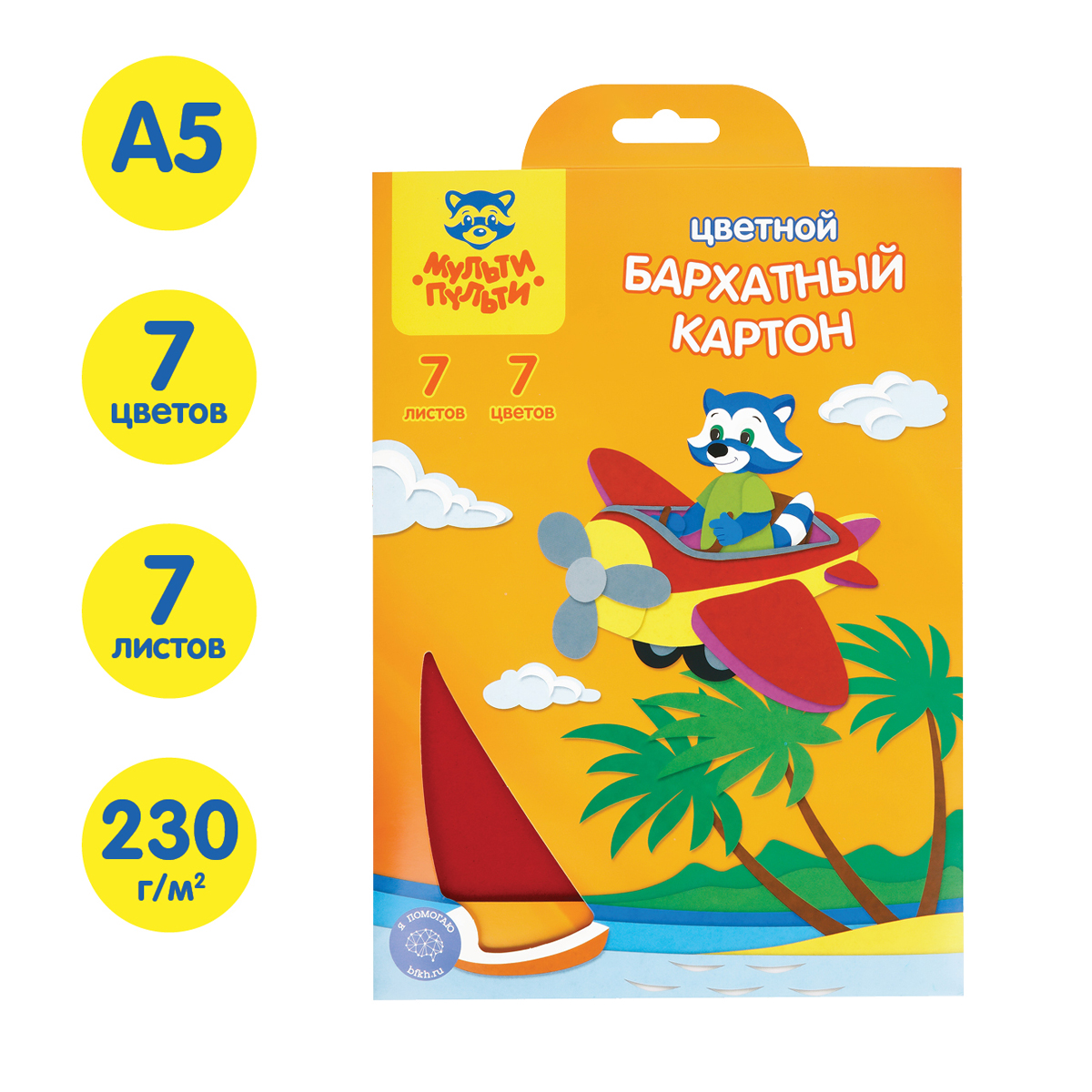 Картон «Мульти-Пульти» серии «Приключения Енота» А5 с нанесённым флоком (ворсом), имитирует поверхность бархатной ткани и отличается насыщенностью, глубиной тона, плотностью. В папке с европодвесои и замком для удобного хранения находятся 7 листов 7-ми различных цветов. Бархатный картон широко применяется для выполнения декоративных и художественно-оформительских работ, изготовления сувениров, изделий флористики, аппликаций, используется в качестве основы для поделок. Для детей старше 3-х лет. • Формат: А5; • Количество листов: 7 л; • Количество цветов: 7 л; • Двусторонний: нет.