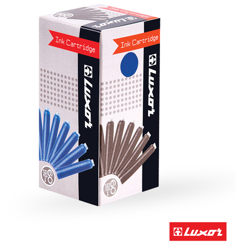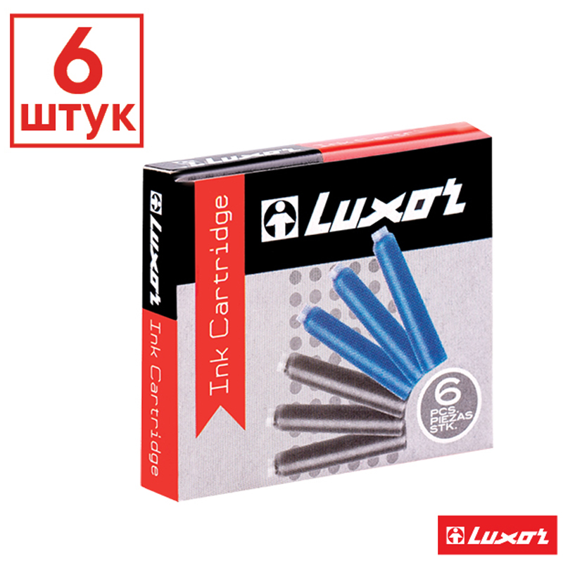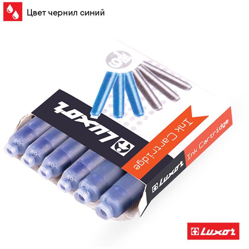 Набор чернильных картриджей Luxor идеально подходит для перьевой ручки. В наборе представлено 6 шт синего цвета чернил. Товар выпускается в картонной коробке со штрихкодом на каждой единице товара. • Цвет чернил: синий; • Количество штук в наборе: 6; • Упаковка единицы товара: картонная коробка.