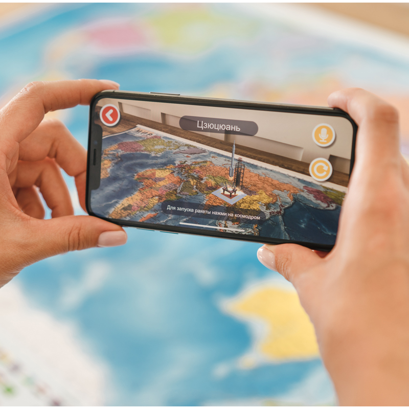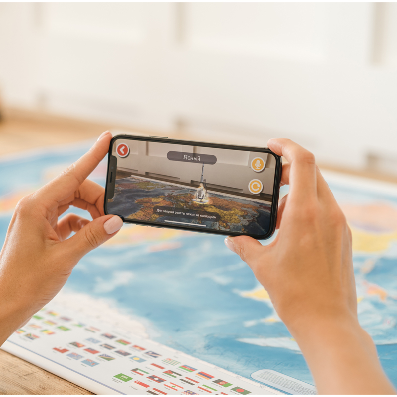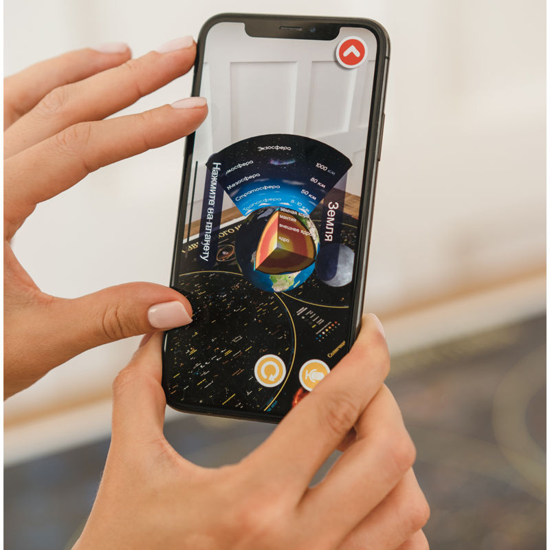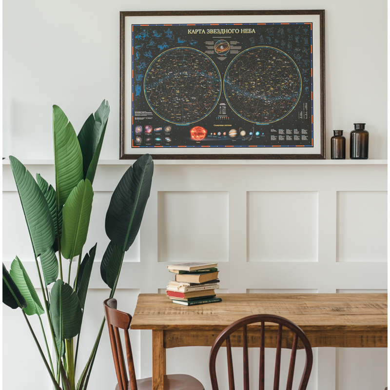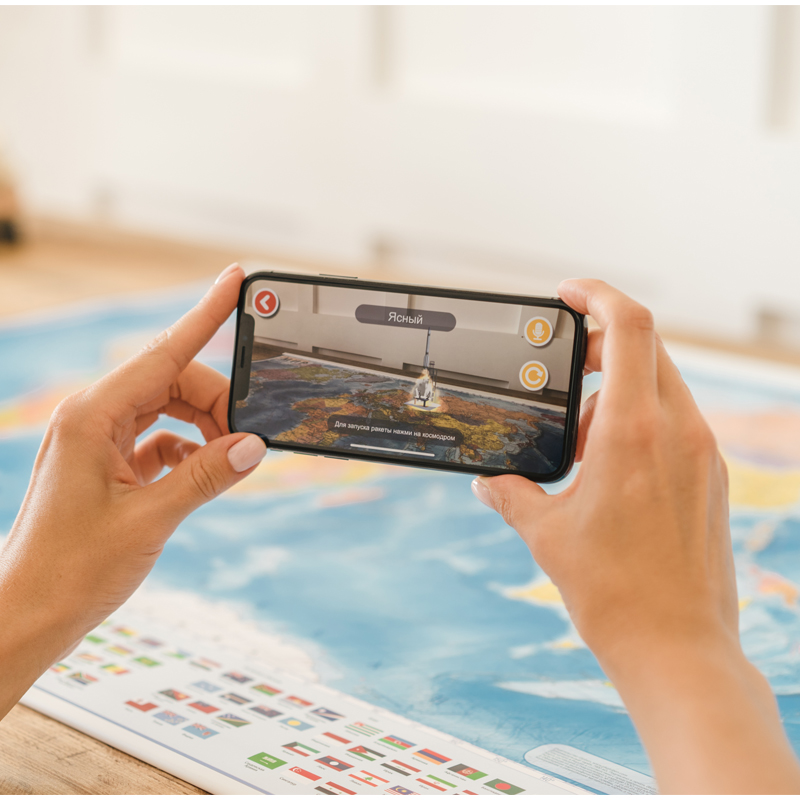 Интерактивная карта Звездного неба Globen - новое необычное пособие для изучения астрономии. Достаточно просто скачать бесплатное приложение IQ Map на смартфон или планшет, чтобы простая карта превратилась в "живую". Навести камеру смартфона на карту, подождать несколько секунд до появления эффекта AR-технологий. На экране смартфона космические объекты появятся в 3D-формате, их можно будет приблизить и рассмотреть со всех сторон. Без использования приложения карта Звездного неба является серьезным настольным учебным пособием. На карте с соблюдением масштаба изображены звезды, планеты и созвездия Северного и Южного полушарий. На свободных полях карты изображены самые известные галактики, планеты Солнечной системы, крупные, а также зодиакальные созвездия в художественном стиле.