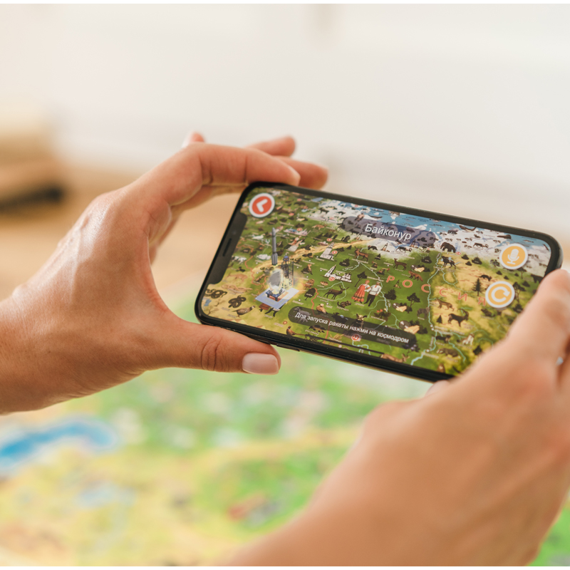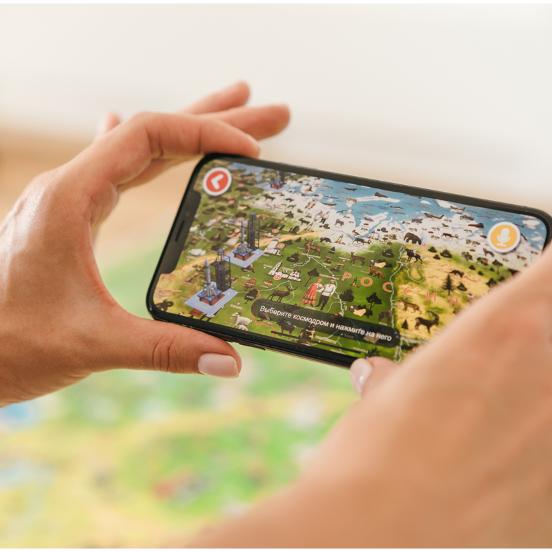 Интерактивная карта для детей "Карта нашей Родины" Globen расскажет о населяющих Россию и страны СНГ народах, об обитателях пустынь, степей и лесов, об исторических открытиях и великих событиях. Достаточно просто скачать бесплатное приложение IQ Map на смартфон или планшет, чтобы простая карта превратилась в "живую". Навести камеру смартфона на карту, подождать несколько секунд до появления эффекта AR-технологий. Такая карта, использующая AR-технологии, поможет ребенку намного быстрее и лучше усвоить новую информацию, научит ориентироваться на карте, привьет интерес к новым знаниям. Выполнена карта в стиле классических общегеографических карт. В нижней части карты расшифровка условных обозначений рисунков.