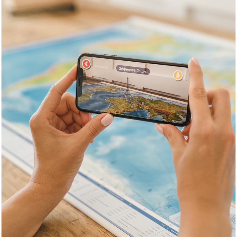 Интерактивная физическая карта Мира Globen - серьезное учебное пособие, которое можно легко превратить в интересную обучающую игру. Достаточно просто скачать бесплатное приложение IQ Map на смартфон или планшет, чтобы простая карта превратилась в "живую". Навести камеру смартфона на карту, подождать несколько секунд до появления эффекта AR-технологий. Такая карта, использующая AR-технологии, поможет ребенку намного быстрее и лучше усвоить новую информацию, научит ориентироваться на карте, привьет интерес к новым знаниям. Выполнена карта с точным соблюдением масштаба, принятых условных географических обозначений. Таблица условных обозначений вынесена в отдельный список. Классическая цветовая гамма изображения общегеографической карты. Кроме географических объектов на карте отмечены столицы, крупные города, порты, границы стран.