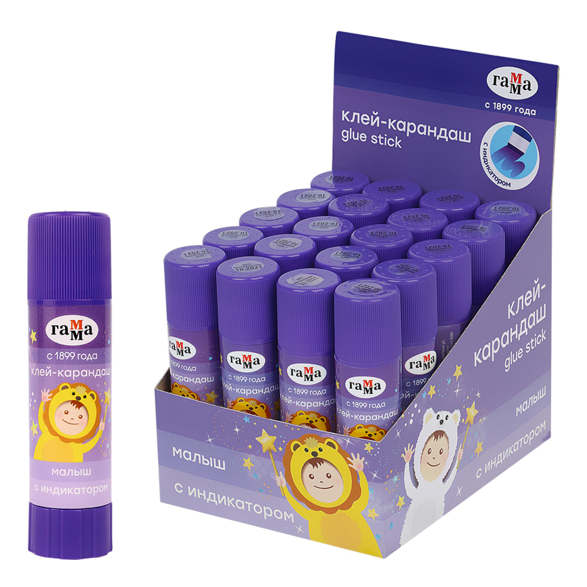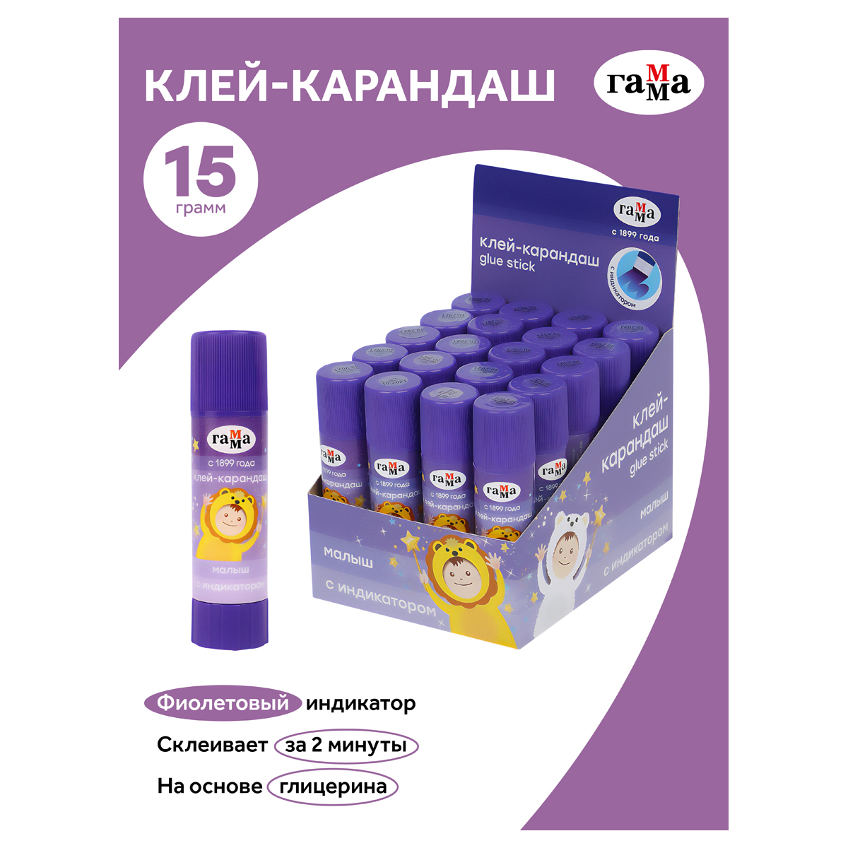 Клей-карандаш ПВП ГАММА серии «Малыш» является незаменимым помощником на уроках труда и занятиях творчеством! Вес - 15 граммов. Клей имеет индикатор фиолетового цвета, который позволяет определить место нанесения на поверхности. Спустя несколько секунд индикатор становится прозрачным. Клей легко наносится и распределяется по поверхности, оставляя тонкий и ровный клеевой слой, что позволяет расходовать его экономично. Он не деформирует поверхность бумаги. Позволяет хорошо склеивать изделия из бумаги, картона, ткани, фотографии. Он безопасен для детей, так как производится из глицерина. Круглый корпус удобно лежит в руке. Поставляется в дисплей-боксах. • Цвет клея: фиолетовый; • Вес: 15 г.