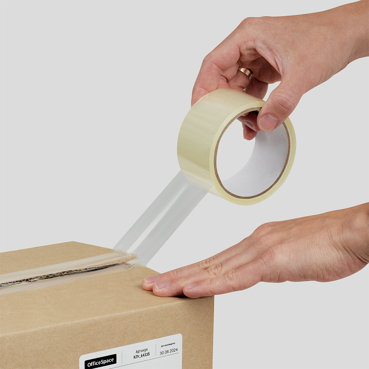 Упаковочная клейкая лента позволяет прочно скреплять детали из бумаги и различных видов картона.