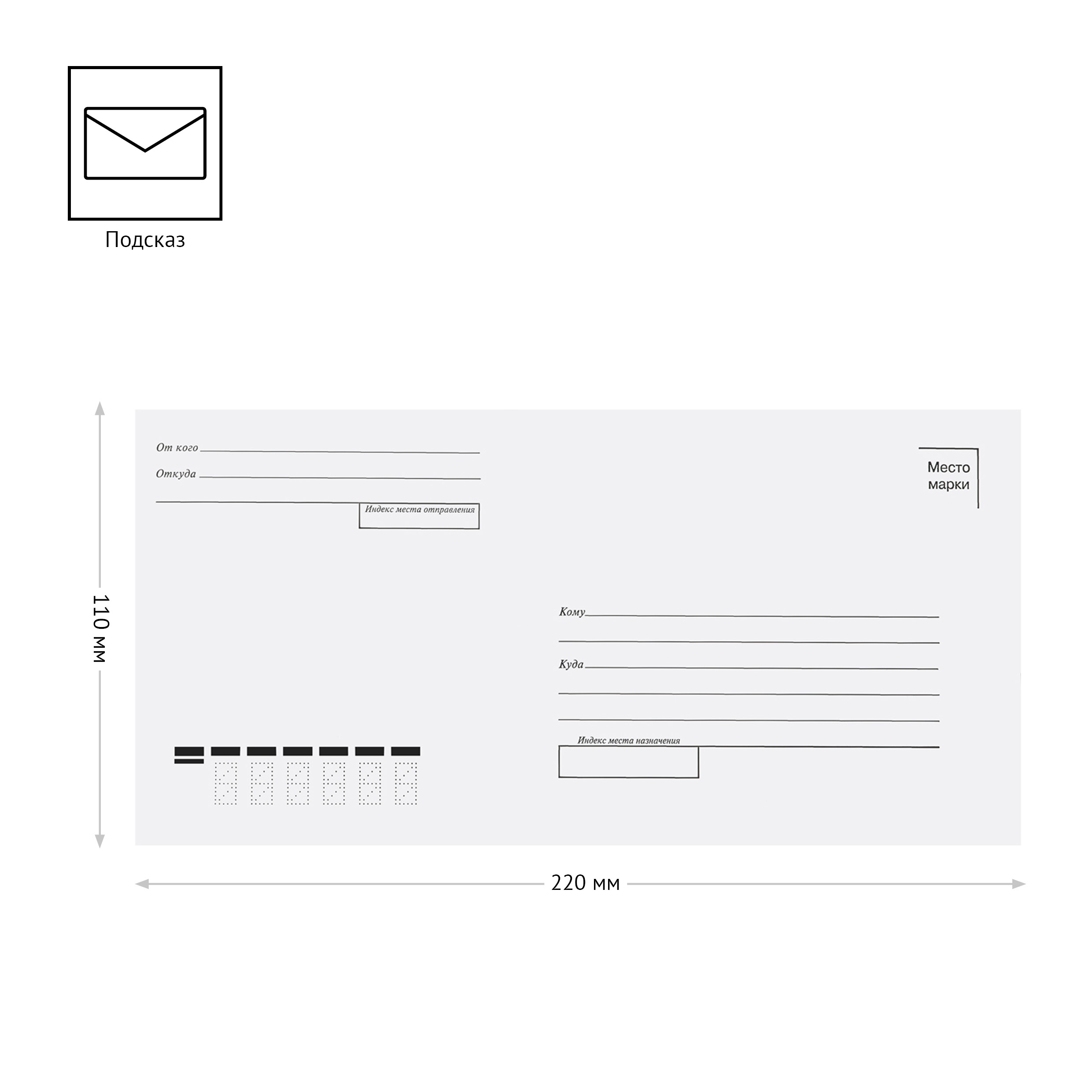 Конверт евроформата размером 110х220мм с подсказом, без окна. Предназначен для вложения листов формата А4, сложенных вчетверо или А5, сложенных вдвое. Клапан конверта крепится с помощью клея декстрин (смачиваемый водорастворимый)