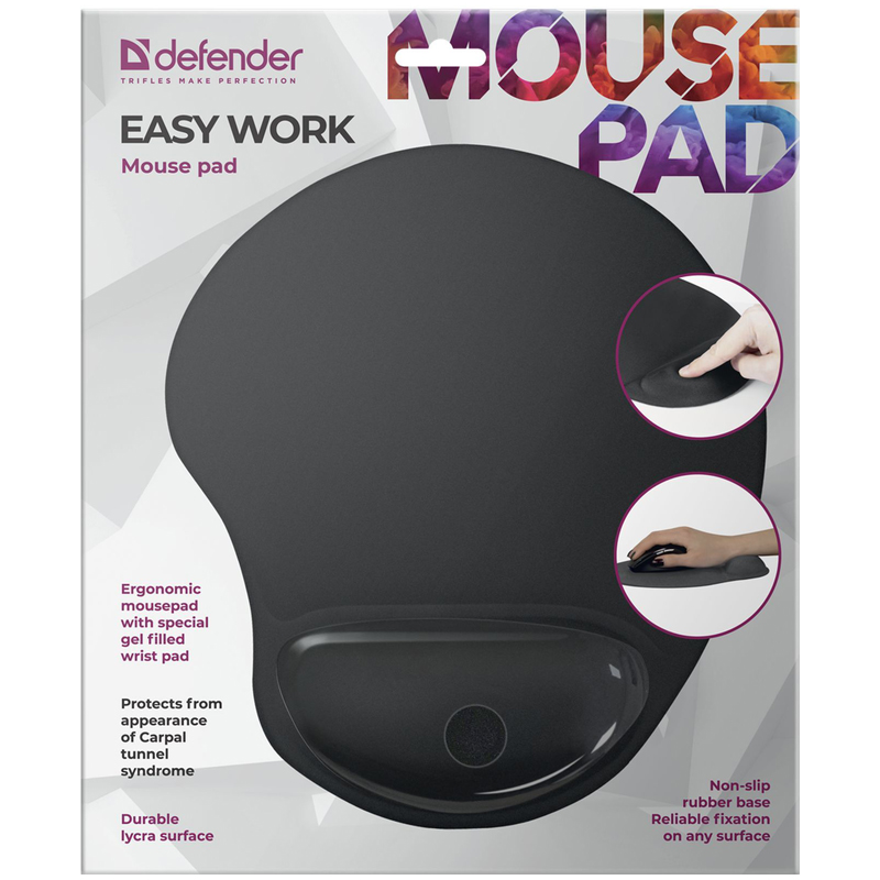 Коврик разработан для тех, кто много работает за компьютером. Имеет гелевую подушку под запястье. Покрыт тканью Lycra. Размер 260 х 225 х 5 мм.