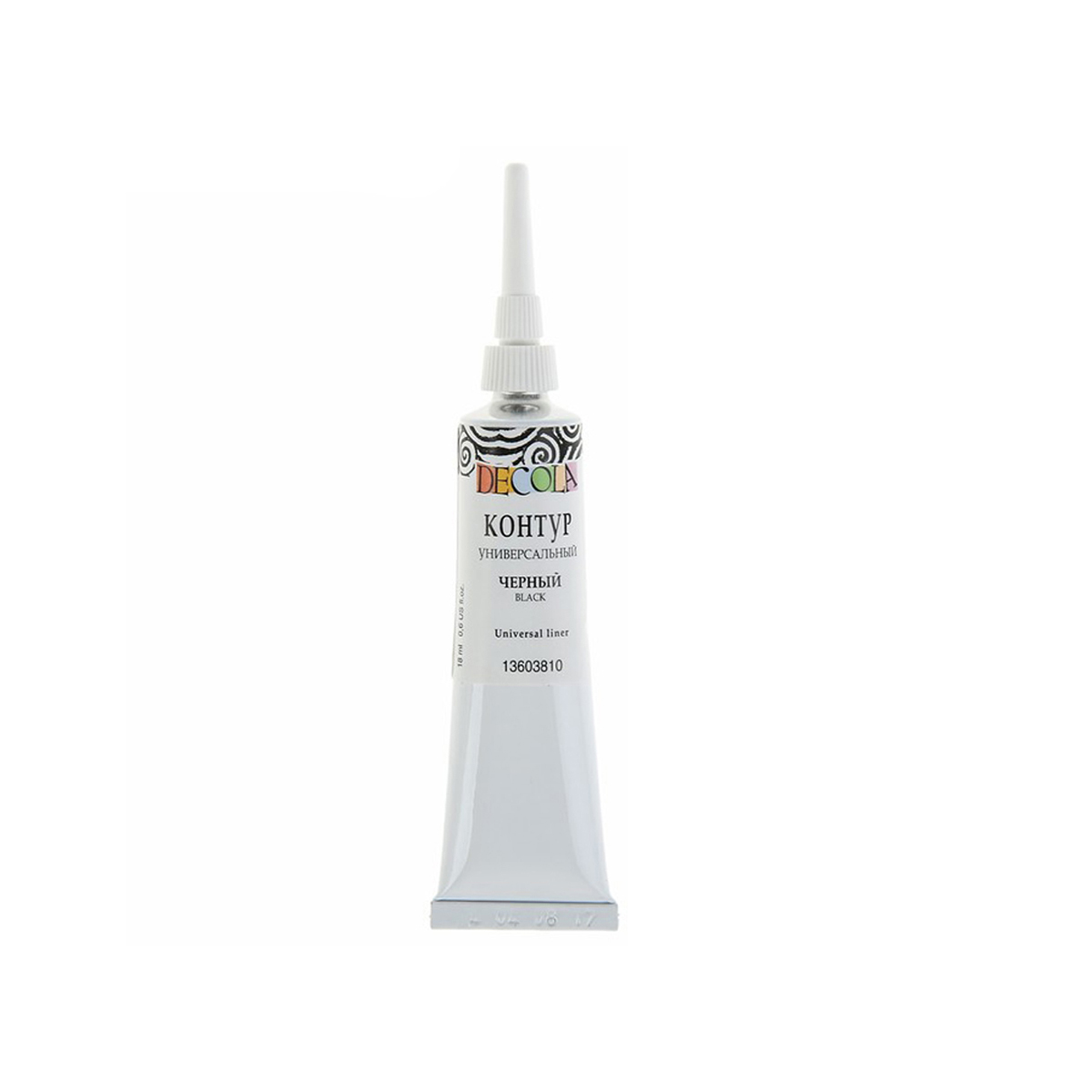 Один контур поможет создать устойчивые к смыванию узоры и рисунки на многих поверхностях: стекле, фарфоре, металле, пластике и пр. Отличительная особенность универсального контура Decola - он дает небольшую усадку, оставляя рельефный узор. Период полного высыхания от 12 до 24 часов, в зависимости от толщины нанесения контура.