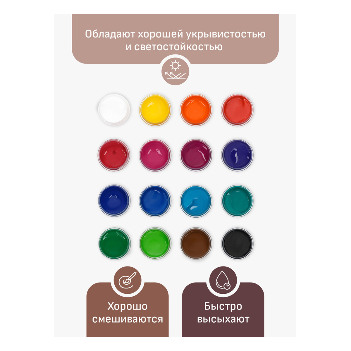 Акриловые краски серии «Хобби» предназначены для декоративно-оформительских работ и росписи бумаги, картона, холста, дерева, металла, гипса. Краски обладают высокой укрывистостью, хорошо смешиваются и быстро высыхают. После высыхания создают на поверхности глянцевый красочный слой. Акрил «Хобби» морозостиойкий, выдерживает транспортировку при низких температурах. Благодаря удобной герметичной баночке с завинчивающейся крышкой, краски долго хранятся, не высыхая. Объём одной баночки — 20 мл, общий объём — 320 мл. • Количество цветов: 16; • Упаковка: баночка с крышкой; • Объём: 20 мл.