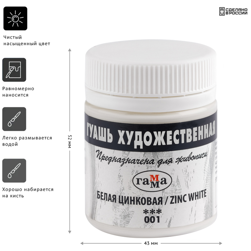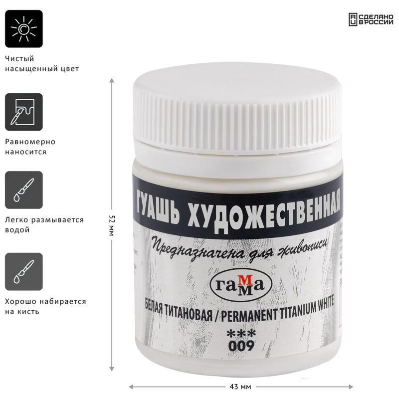 Художественная гуашь идеальна для живописных и декоративных работ, графики. Отлично подходит для профессиональных художников и студентов художественных училищ. Благодаря высококачественным пигментам цвета красок яркие и насыщенные. Гуашь хорошо набирается на кисть, ложится на бумагу плотным матовым слоем, который после высыхания имеет бархатистую поверхность.
