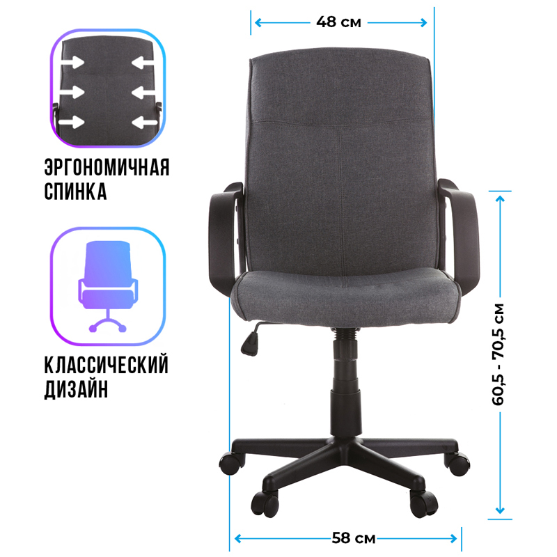 Доступное компактное кресло с эргономичной спинкой и обивкой, устойчивой к износу.