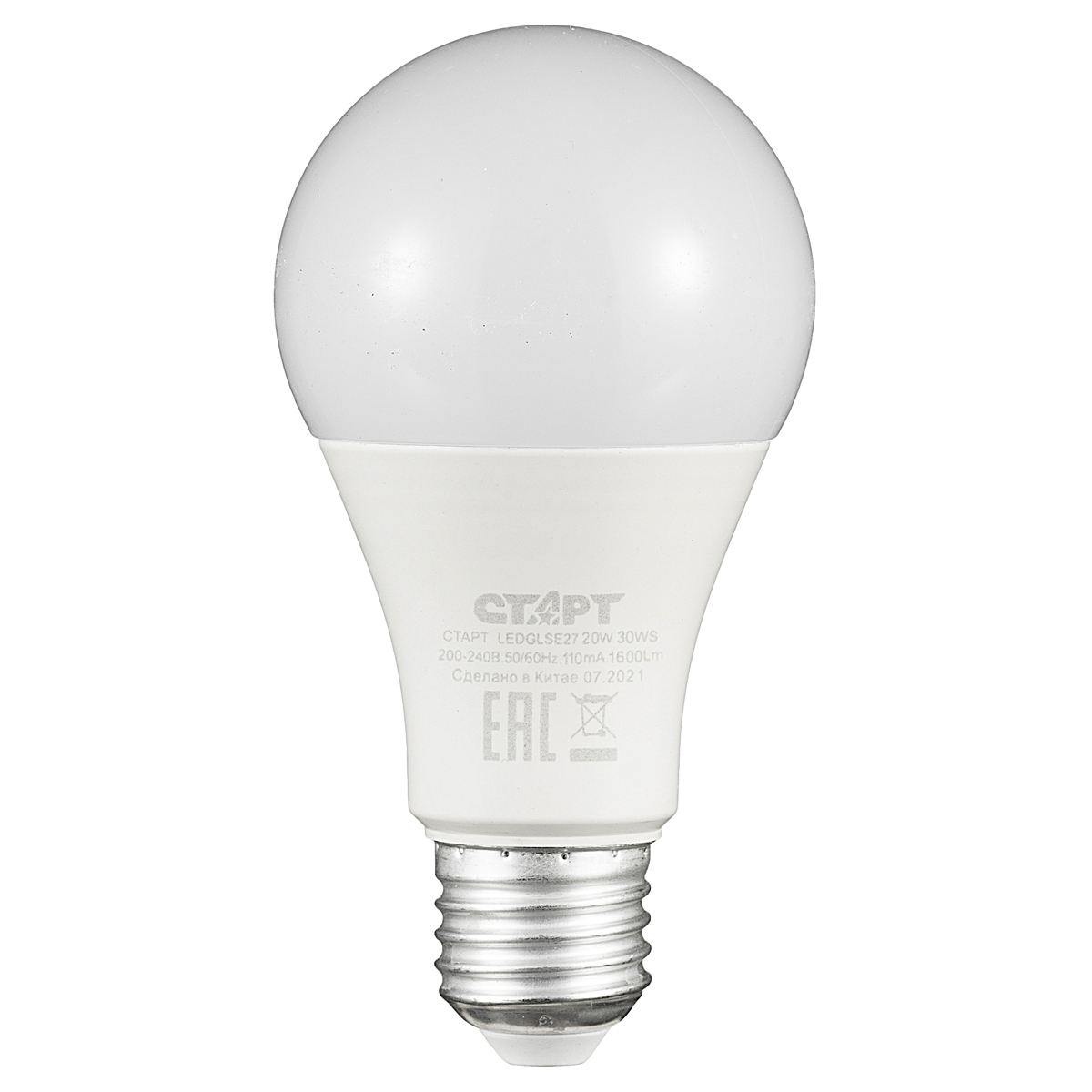 Лампа светодиодная Старт LED, серия "WS" 20W30, тип А "груша", E27, 2700К, теплый свет, 25000ч 17285