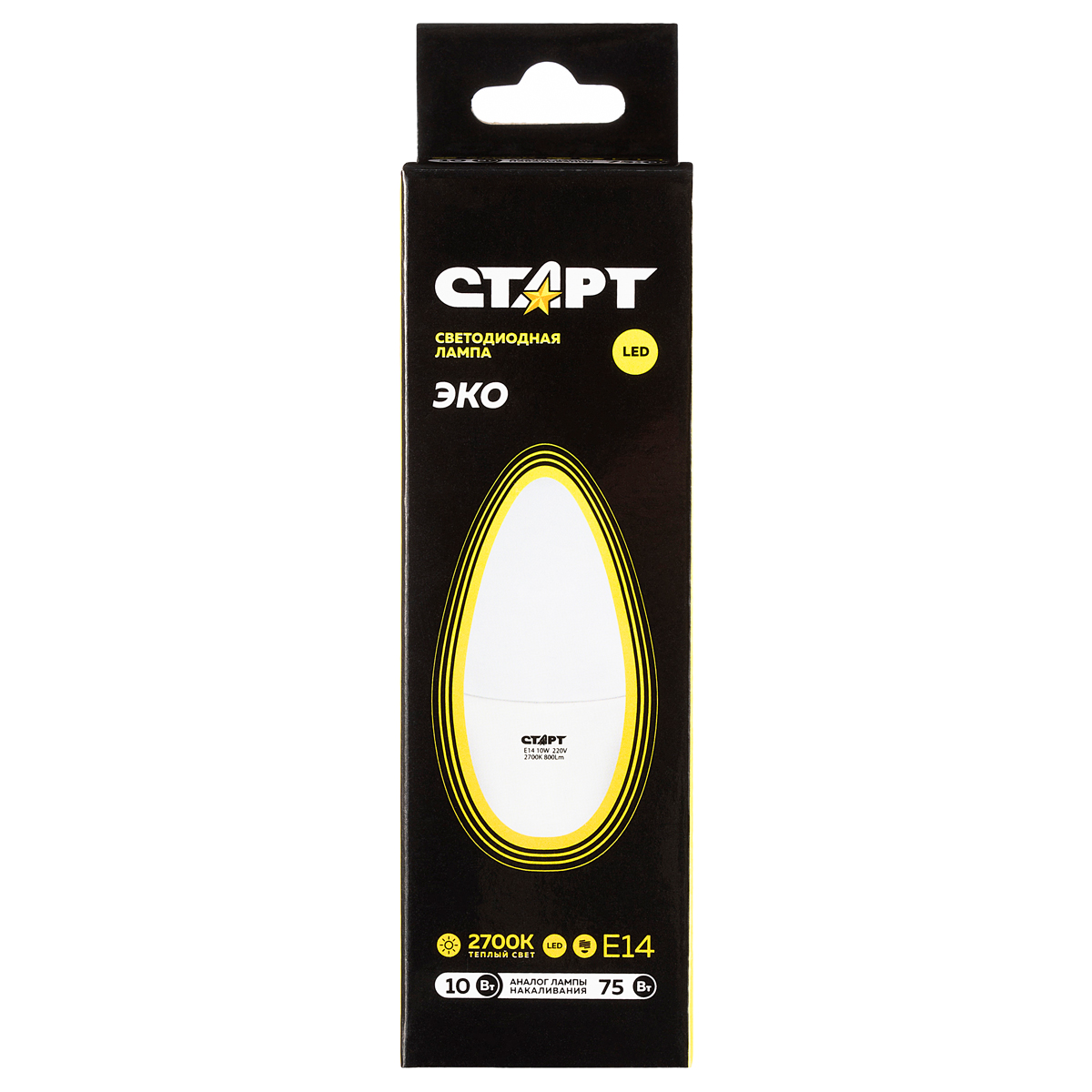 Лампа светодиодная Старт LED, серия "WS" 10W30, тип С "свеча", E14, 2700К, теплый свет, 25000ч 17276