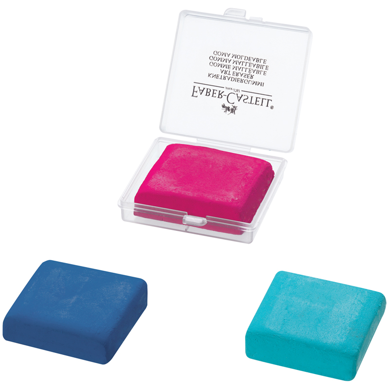 Ластик-клячка от легендарного немецкого производителя Faber-Castell. Отлично подходит для работы с мягкими чернографитными карандашами, углем, пастелью. Благодаря мягкой текстуре отлично принимает нужную форму. Ластик упакован в пластиковый контейнер, удобный для хранения и транспортировки. Размер: 40*35*10мм. Цвет: красный/синий/желтый, ассорти.