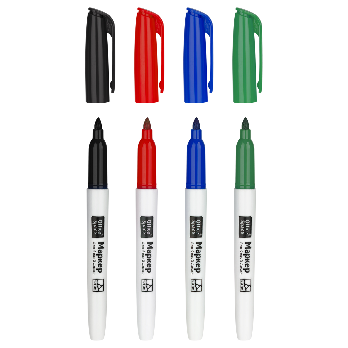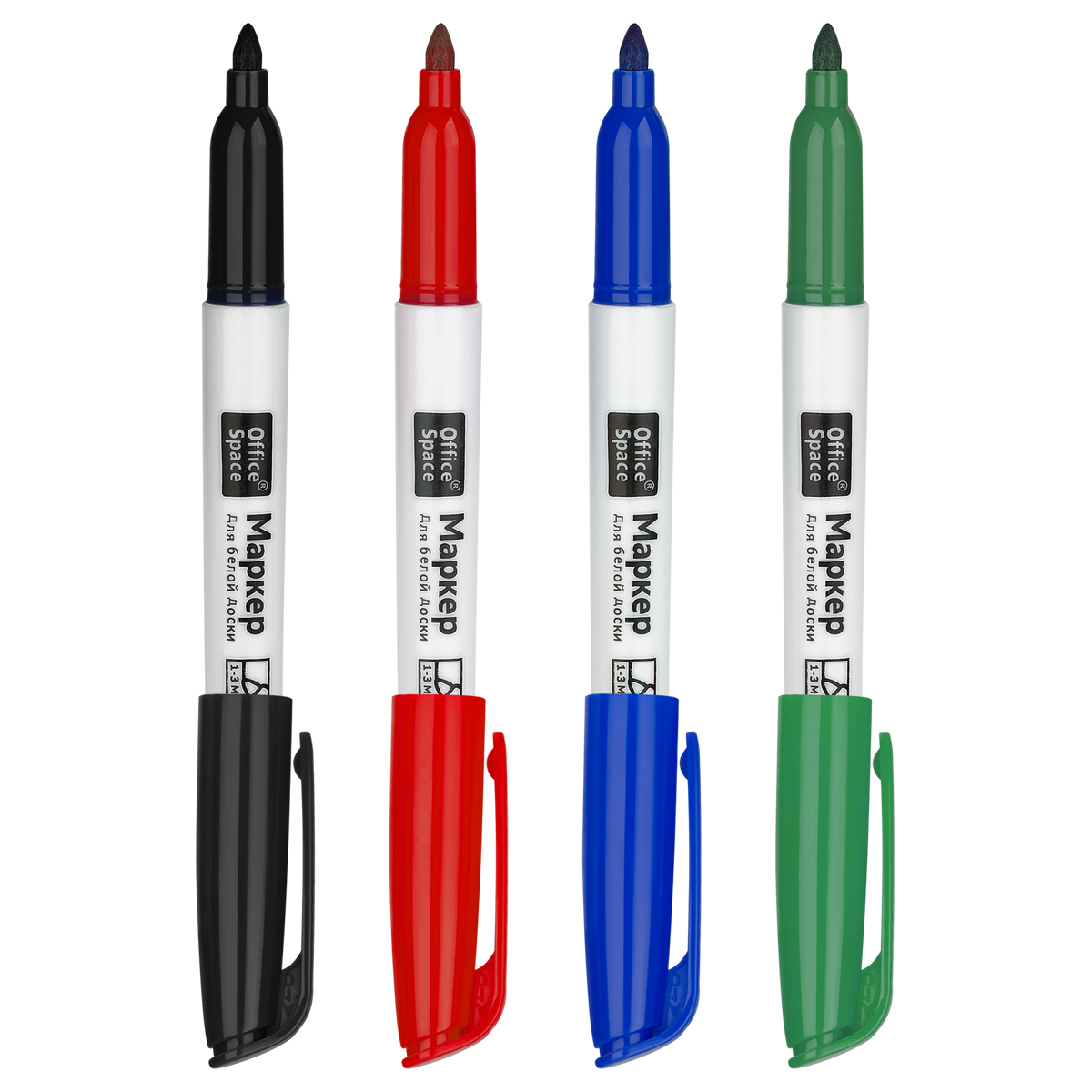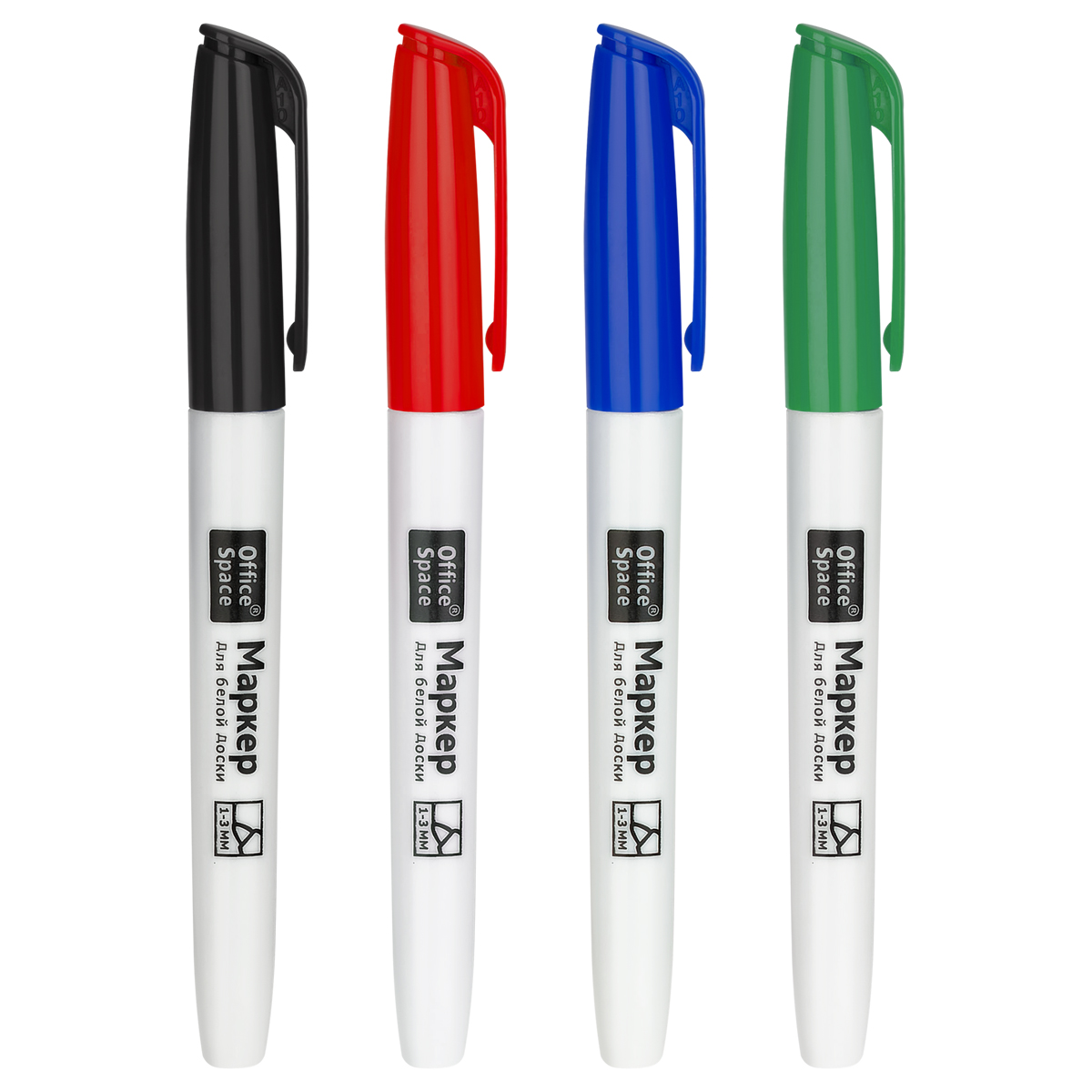 Набор маркеров OfficeSpace предназначен для письма на магнитно-маркерных досках. Толщина линии: 1-3 мм. Набор упакован в ПВХ чехол с европодвесом размерами 163*60*15 мм. Длина письма: 350 м. Закруглённый пишущий узел. В наборе 4 цвета: красный, синий, зеленый, чёрный. Чернила на водной основе легко стираются сухой губкой для досок. Хранить с закрытым колпачком.