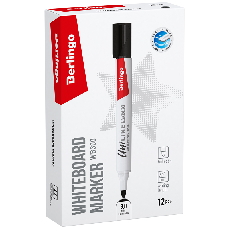 Маркер для магнитно-маркерных досок на спиртовой основе. Чернила легко стираются сухой губкой для досок. Эксклюзивное матовое покрытие создает уникальный внешний вид и обеспечивает максимальный комфорт при использовании. Пулевидный пишущий узел. Ширина линии – 3 мм. Длина непрерывной линии – 500 м. Плотный колпачок с клипом предотвращает высыхание. Цвет чернил - черный. Упакован в картонную коробку по 12 штук