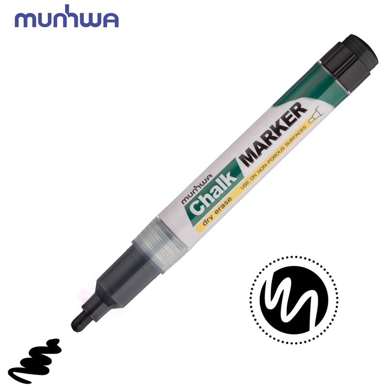 Маркер меловой MunHwa "Chalk Marker" - жидкий мел на спиртовой основе. Используется для декорирования зеркал и стекол, оформления окон, для надписей на металле и пластике. Маркеры, нанесенные на гладкую поверхность, легко удаляются сухой тканью не оставляя разводов. Меловой маркер устойчив к умеренным осадкам. После нанесения образует тонкую пленку на поверхности. Благодаря высококачественным чернилам, мел поступает дозированно, ложится на поверхность равномерным и однородным слоем, полностью закрашивая обрабатываемую поверхность. Меловой маркер - не крошится, не осыпается при нанесении и не пачкает руки. Клапанный механизм пишущего узла исключает растекание и разбрызгивание мела, преждевременное пересыхание маркера. Толщина линии письма - 3мм. Черный цвет чернил. Меловой маркер MunHwa "Chalk Marker" - это твой помощник для воплощения всех креативных решений в жизнь. Инструкция по применению: 1) Встряхнуть маркер с закрытым колпачком. 2) Открыть колпачок. Удерживая маркер в