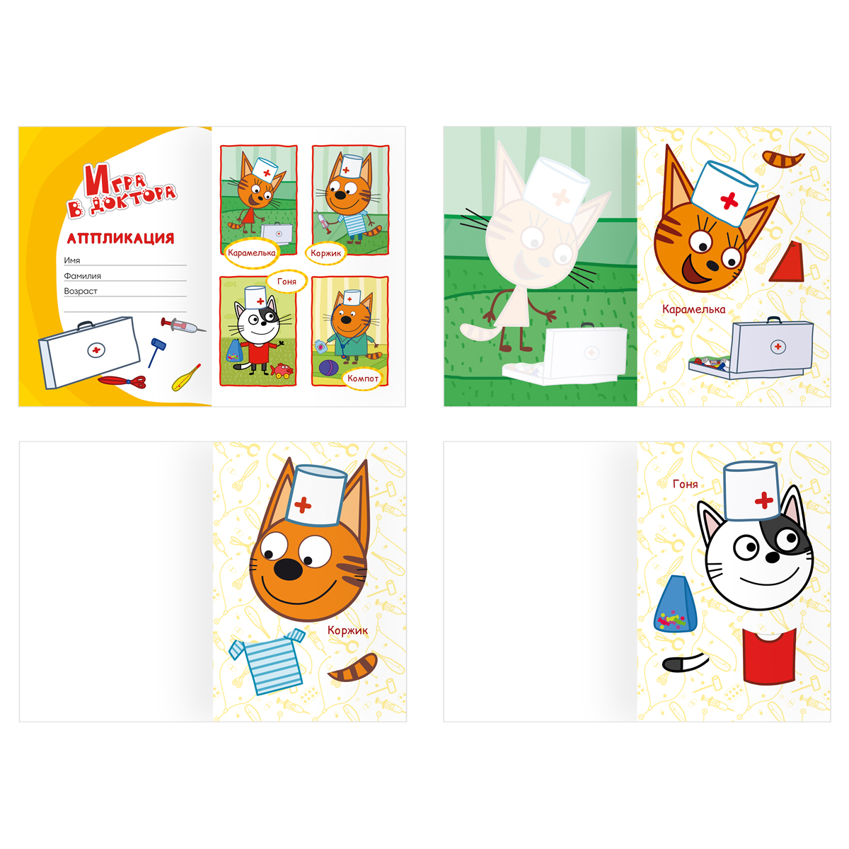Красочная аппликация с любимыми героями из мульсериала "Три кота" поможет Вашему ребёнку развить моторику рук, воображение, сообразительность, эстетический вкус и конструктивное мышление. Совместное занятие взрослых и ребёнка позволит весело и с пользой провести время. Готовую аппликацию ребёнок с радостью сможет подарить близким и друзьям. Формат А5. Количество листов -6.