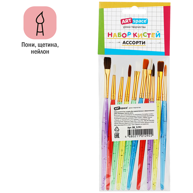 Художественные кисти ArtSpace изготовлены из волоса пони, щетины, неёлона. Они хорошо впитывают, удерживают и отдают краску. Изделия подойдут для работы с акварелью, гуашью, темперой, водополимерными материалами. Кисти разной формы позволят протестировать вариативные мазки и расширят возможности в процессе создания картины.