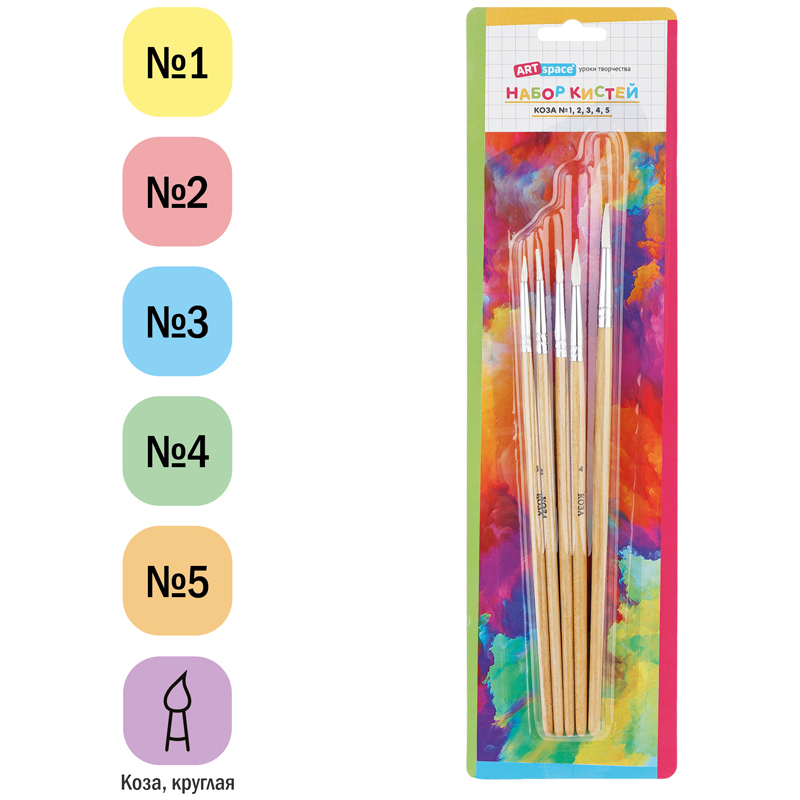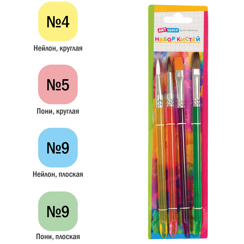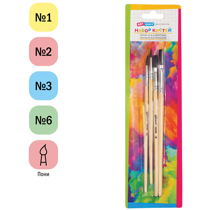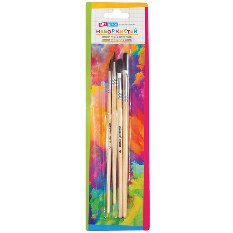 Художественные кисти ArtSpace изготовлены из волоса пони. Подходят для начальных уроков рисования. Кисти подойдут для работы с акварелью, гуашью. Изделия плоской и круглой формы позволят протестировать вариативные мазки и расширят возможности в процессе создания картины.